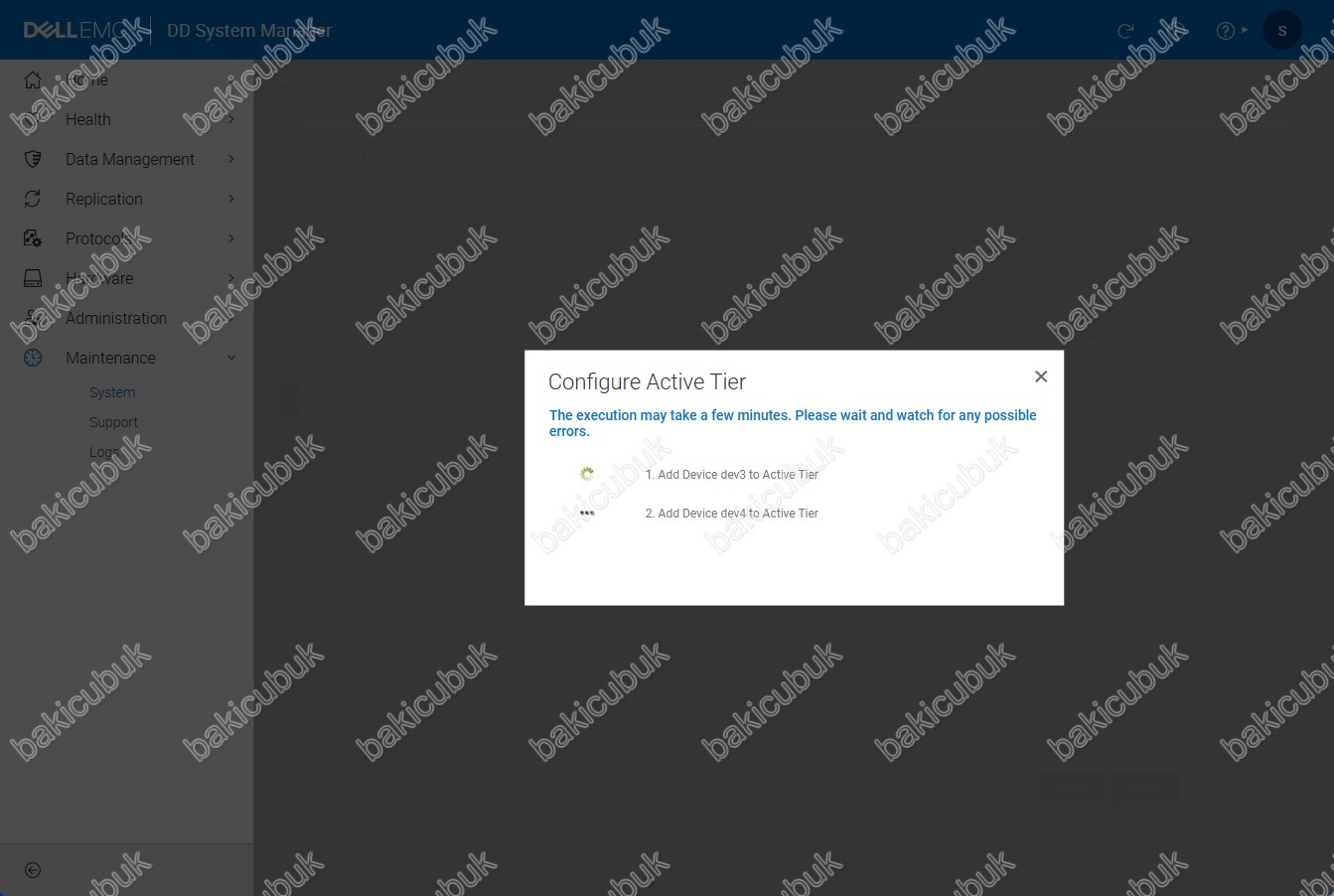 Configure Active Tier ekranın da dev3 isimli Hard diskimiz üzerinde gerekli yapılandırma başarılı bir şekilde tamamlandığını ve dev4 isimli Hard diskimiz üzerinde gerekli yapılandırmanın başladığını görüyoruz.