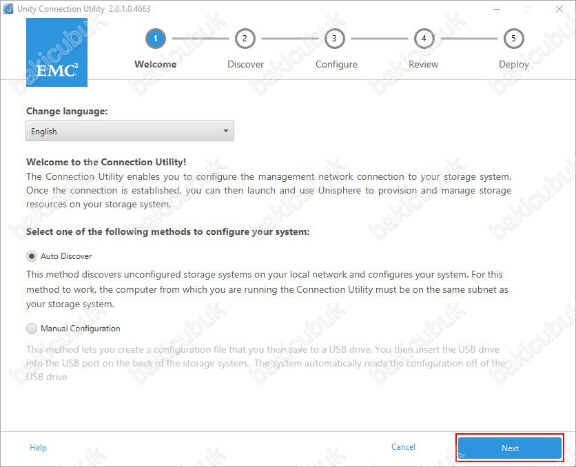 Dell EMC Unity 400F ilk kurulum ve yapılandırılması için Unity Connection Utility yazılımını kuruyoruz ve çalıştırıyoruz. Unity Connection Utility ekranında Auto Discover modu ile Dell EMC Unity 400F Storage ortamımızdaki DHCP Server üzerinde aldığı IP Address ( IP Adresi ) ile üzerinden Dell EMC Unity 400F üzerindeki gerekli kurulum ve yapılandırmayı yapabilirsiniz. Manual Discover modu ile yapılandırmayı bir USB Flash üzerine yazarak daha sonra Dell EMC Unity 400F üzerinde yapılandırabilirsiniz. Yani Auto Discover modu Online olarak yapılandırma Manual Discover modu Ofline olarak yapılandırma şeklidir.