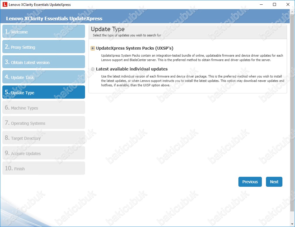 Machine Types ekranında Lenovo XClarity Essentials UpdateXpress desteklediği Lenovo Server listesi üzerinde mevcut sunucumuzun otomatik olarak geldiğini görüyoruz ve Next diyerek devam ediyoruz.