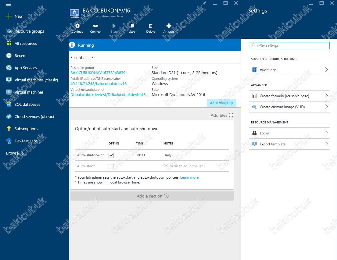 DevTest Lab ortamı üzerindeki gerekli ayarlar yapılandırılıyor.