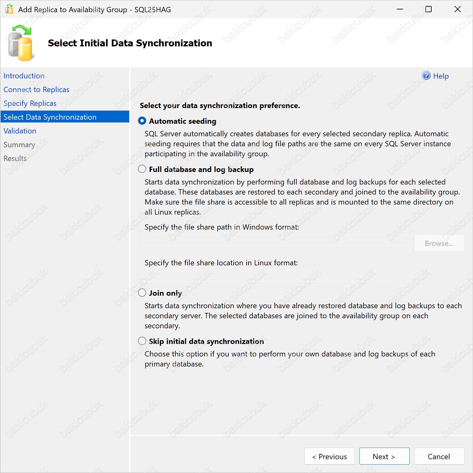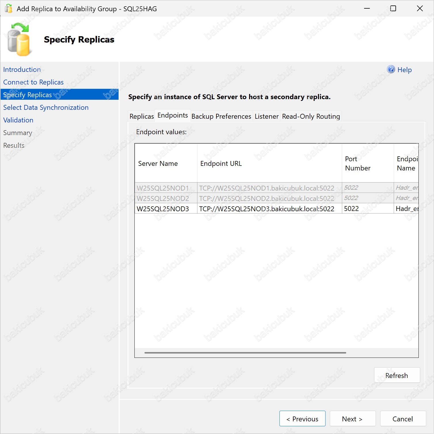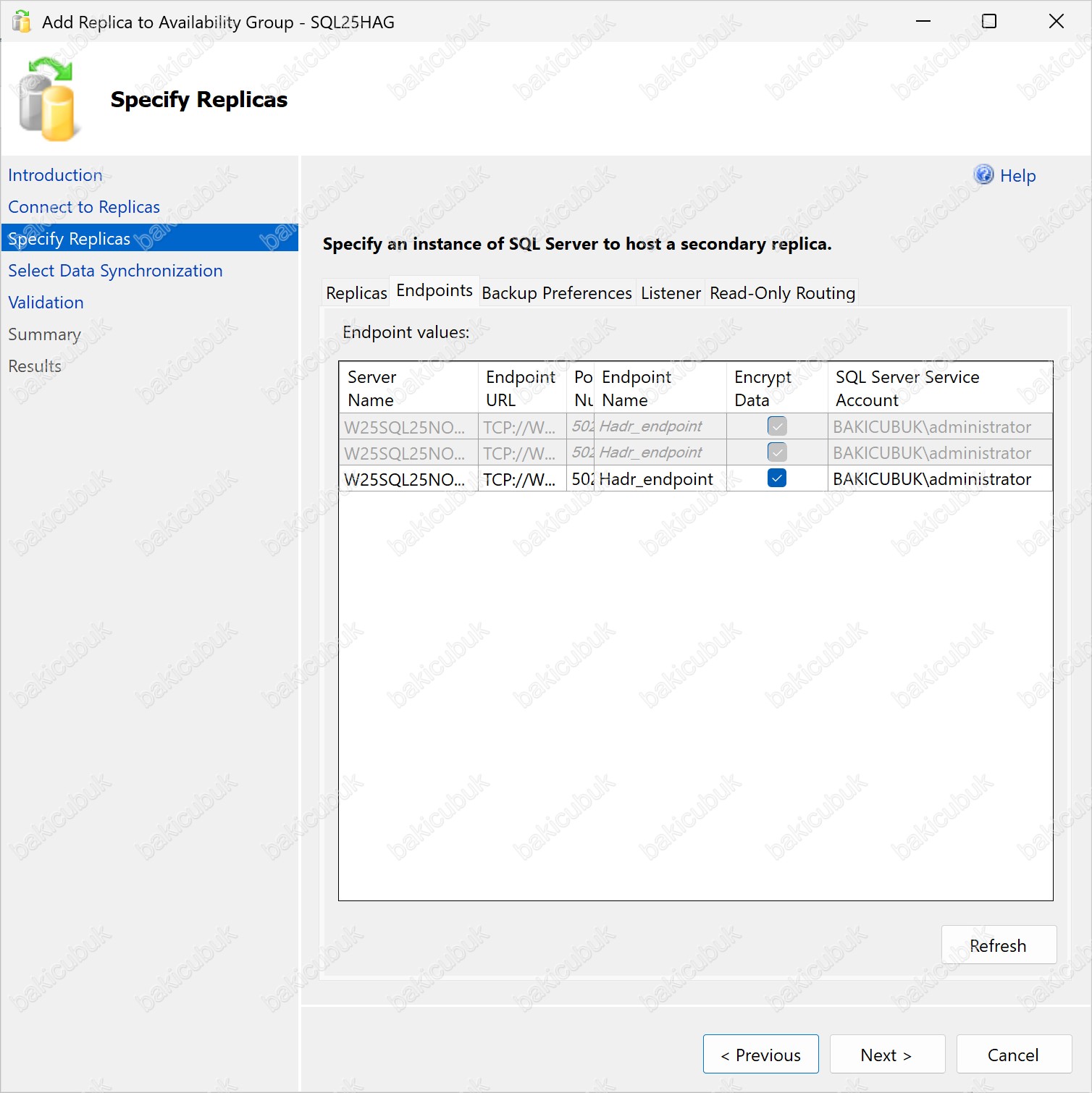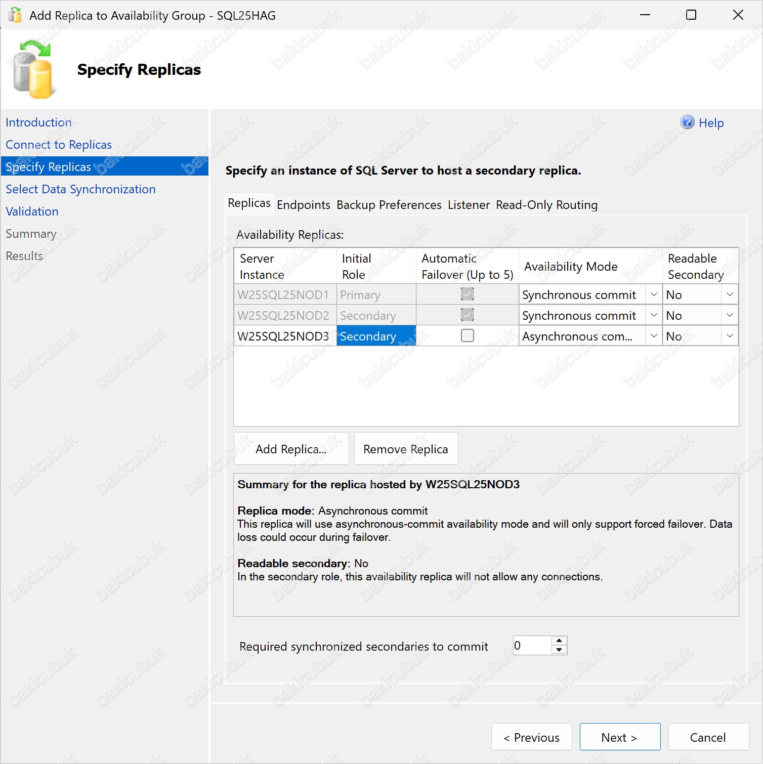 Add Replica to Availability Group – SQL25HAG ekranı geliyor karşımıza.