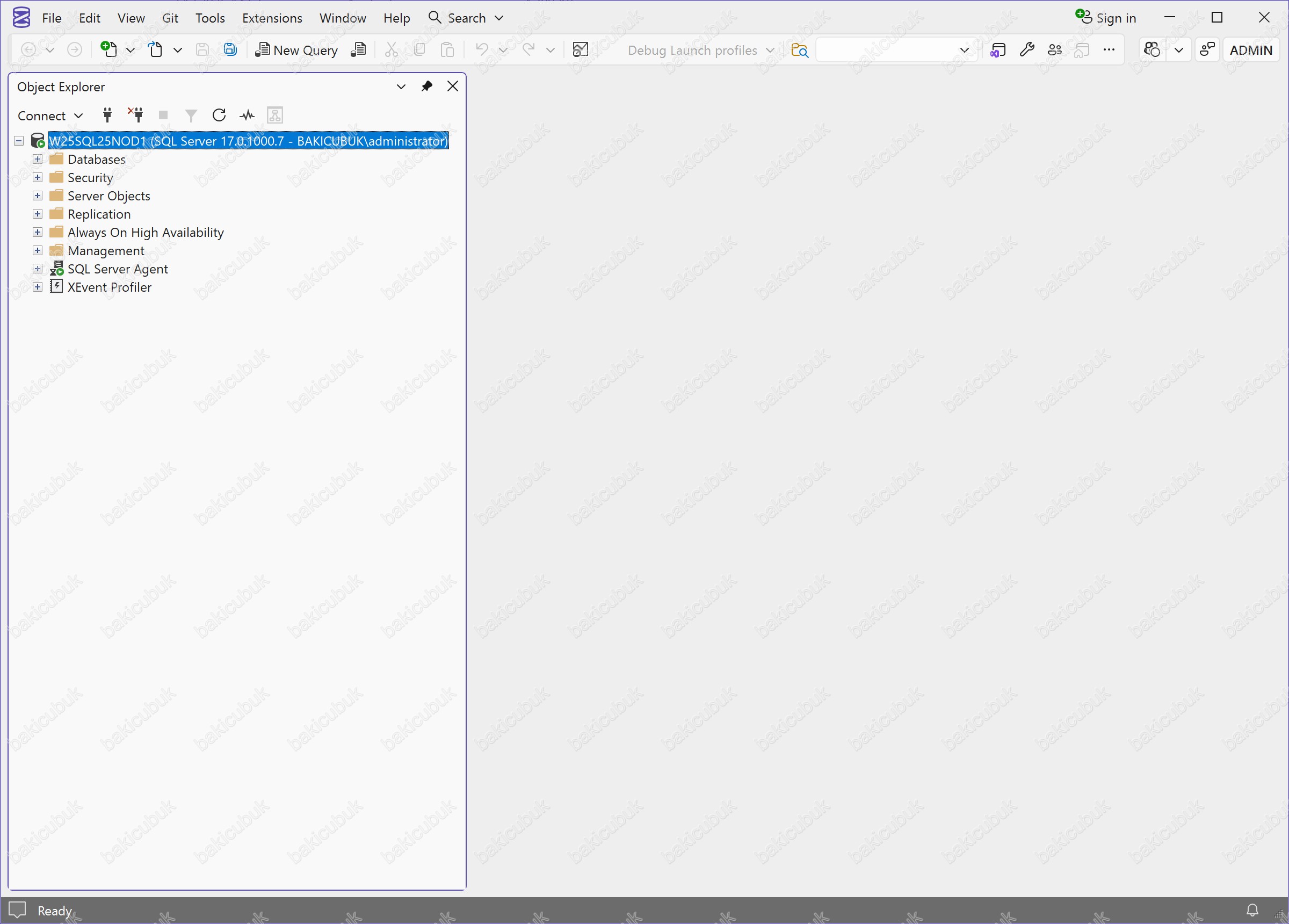 Microsoft SQL Server Management Studio (SSMS) konsolunda W25SQL25NOD1 isimli sunucumuza bağlantı sağlamış oluyoruz.