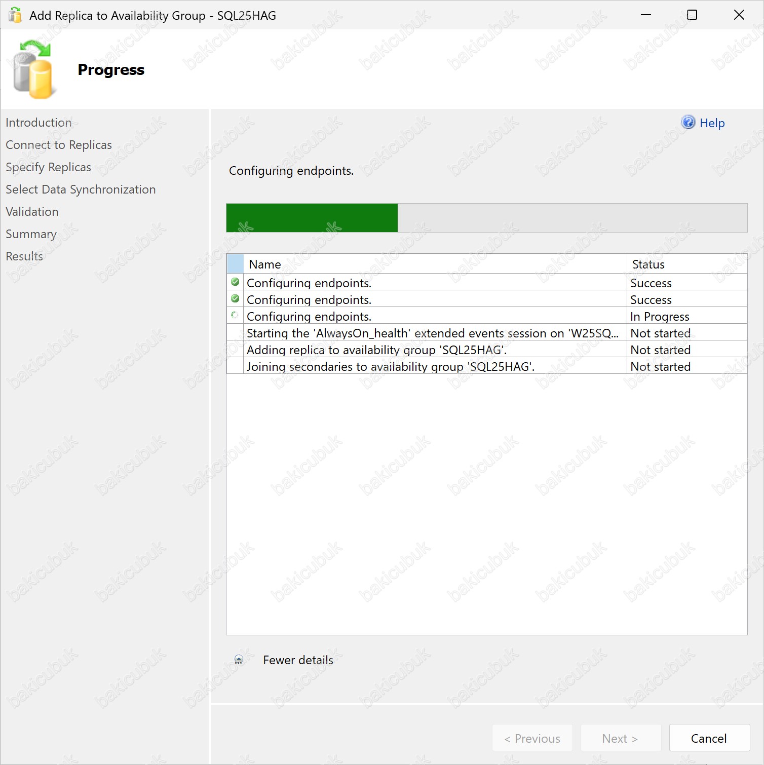 Progress ekranında, Availability Group yapısına eklenecek olan W25SQL25NOD3 isimli sunucu için gerekli yapılandırmanın başlatıldığını görüyoruz.