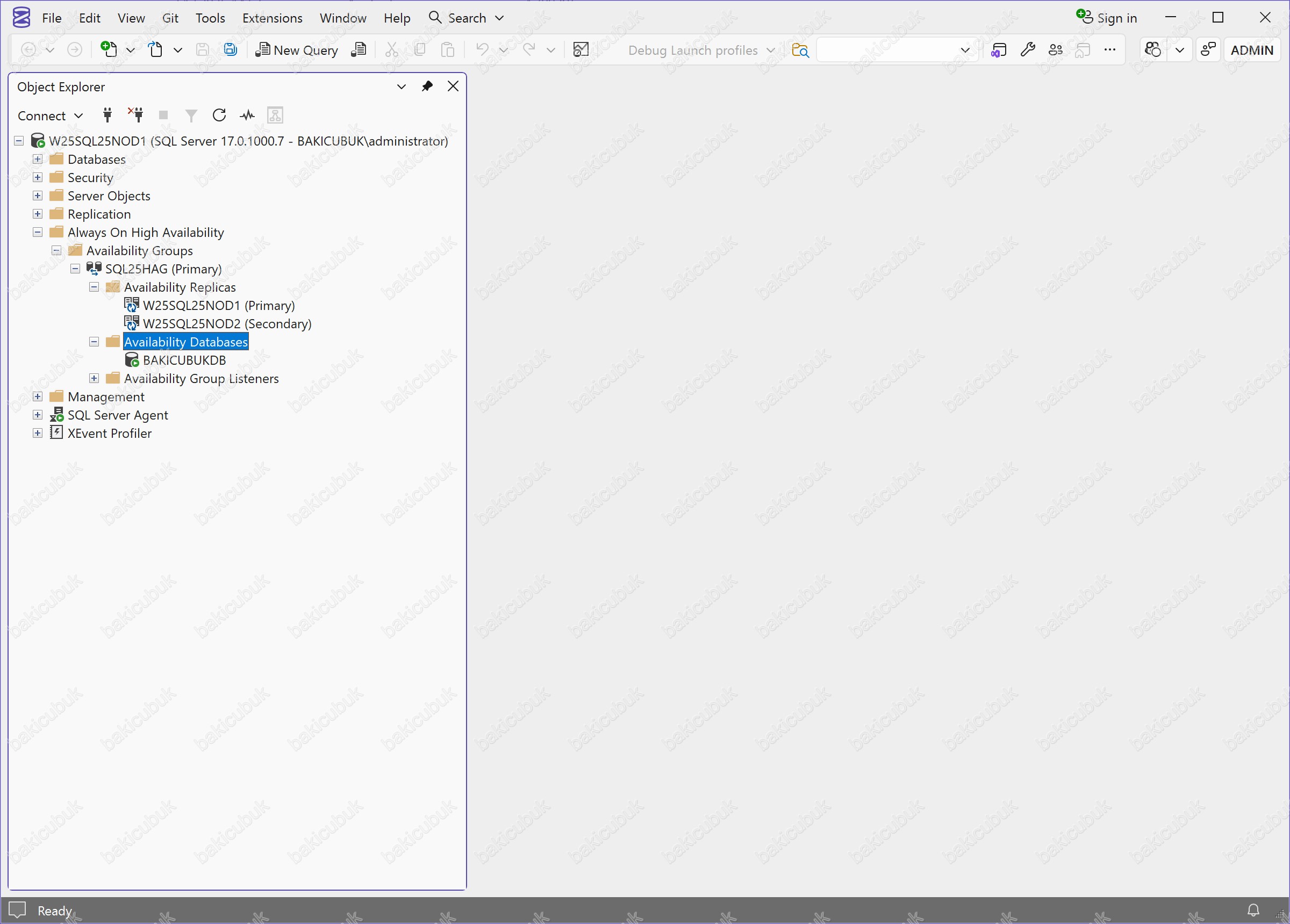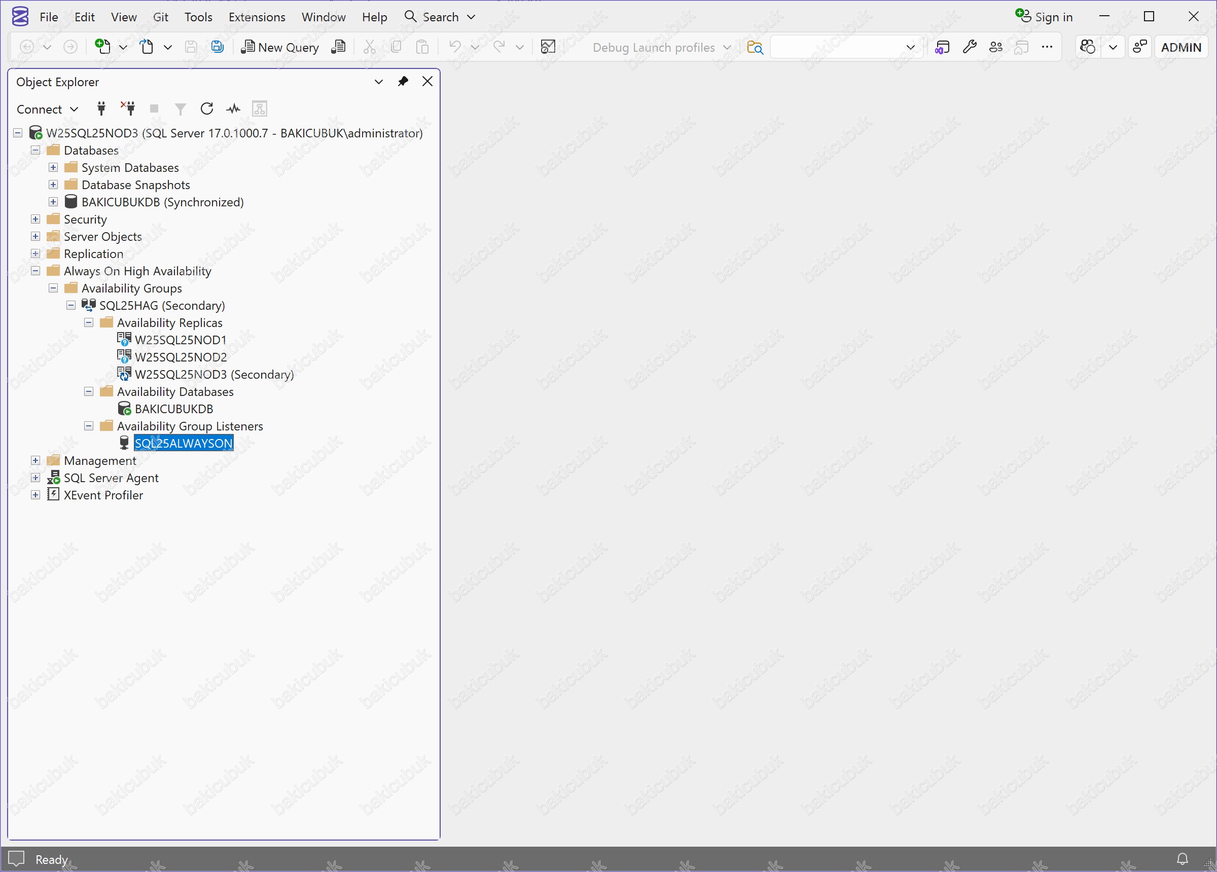 Bu yapı altında, Availability Databases bölümünde BAKICUBUKDB isimli Database (Veritabanı)’nın Availability Group’a yapısına dahil edildiğini görüyoruz.
