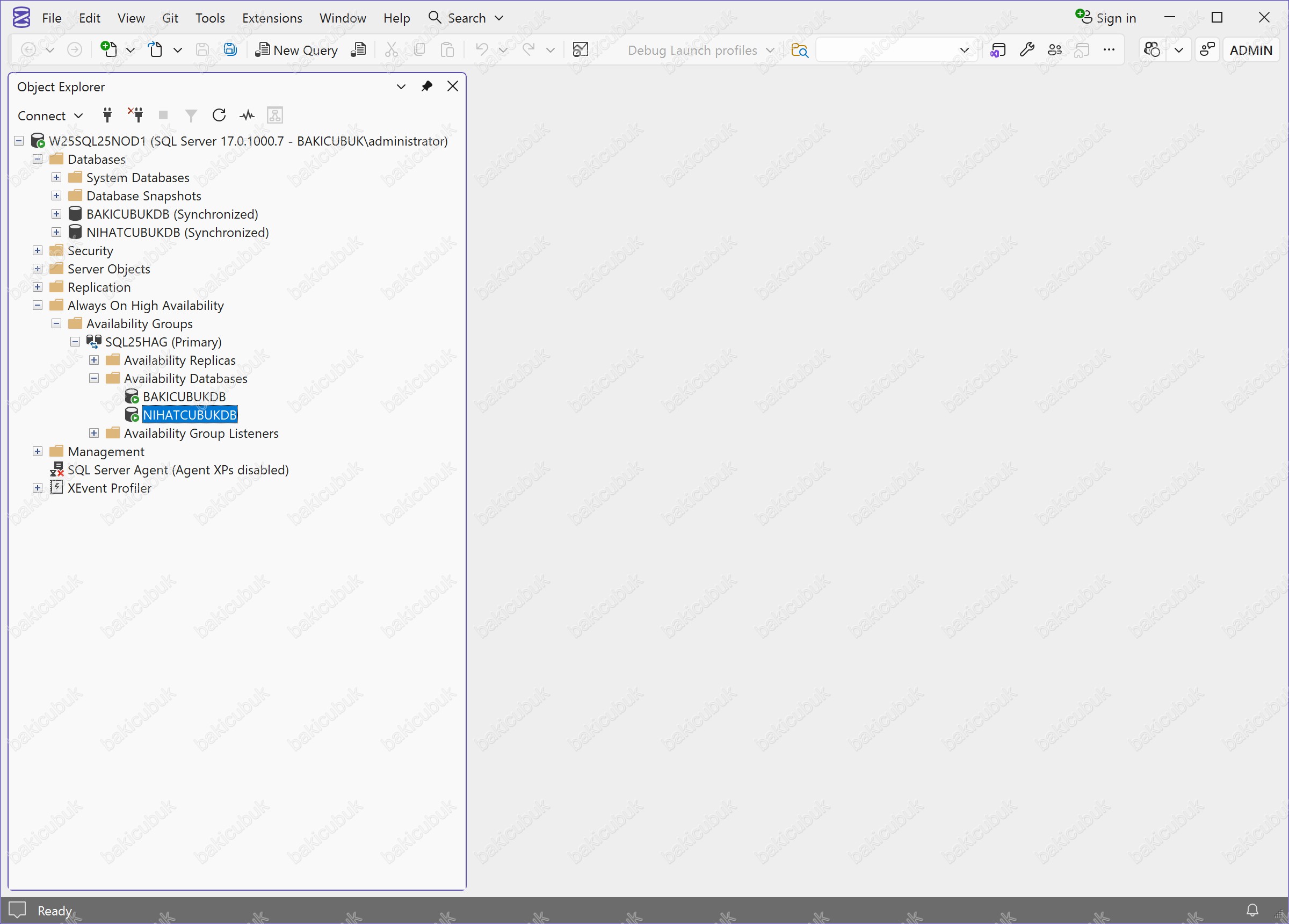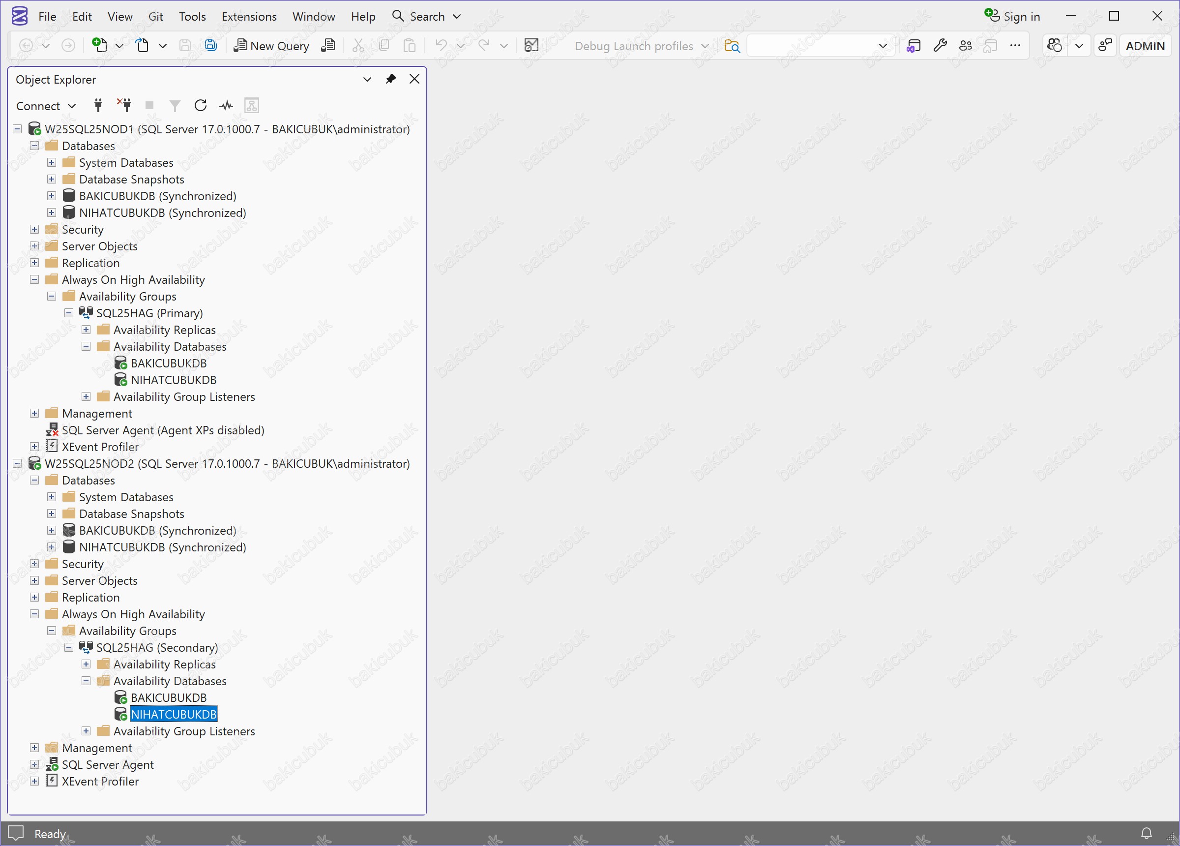 Bu kapsamda, NIHATCUBUKDB isimli Database (Veritabanı)’nı mevcut Microsoft SQL Server 2025 Always On Availability Group yapısına dahil edeceğiz.