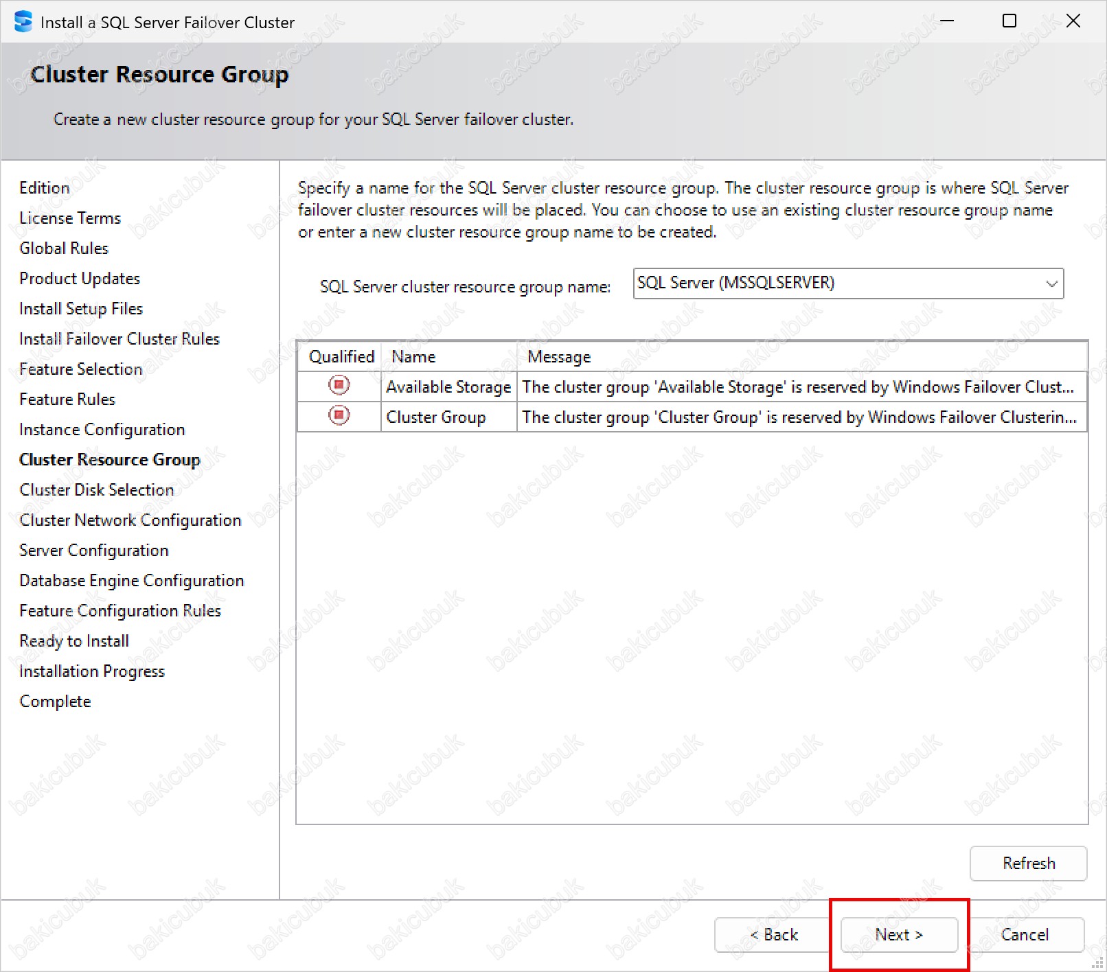 Bu nedenle User Database Directory, User Database Log Directory ve Backup Directory seçimlerinin Ready to Install ekranında doğru ve eksiksiz şekilde listelendiğinin dikkatle kontrol edilmesi, Failover Cluster Instance (FCI) yapısının stabil, öngörülebilir ve kesintisiz çalışması açısından son derece önemlidir. Tüm bilgilerin doğruluğu teyit edildikten sonra kuruluma güvenle devam edilebilir.