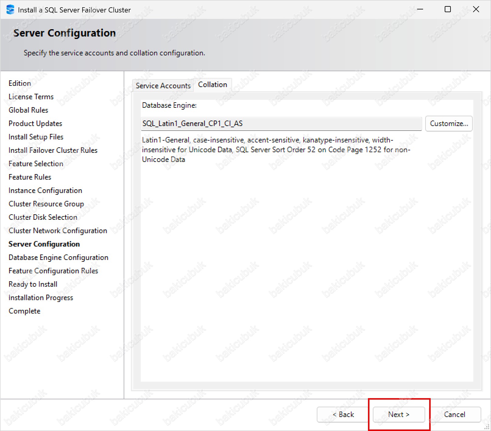 Bu adım ile birlikte, SQL Server Failover Cluster Instance (FCI) kurulum sihirbazı bir sonraki yapılandırma ekranına ilerler ve kurulum süreci planlanan şekilde devam eder.
