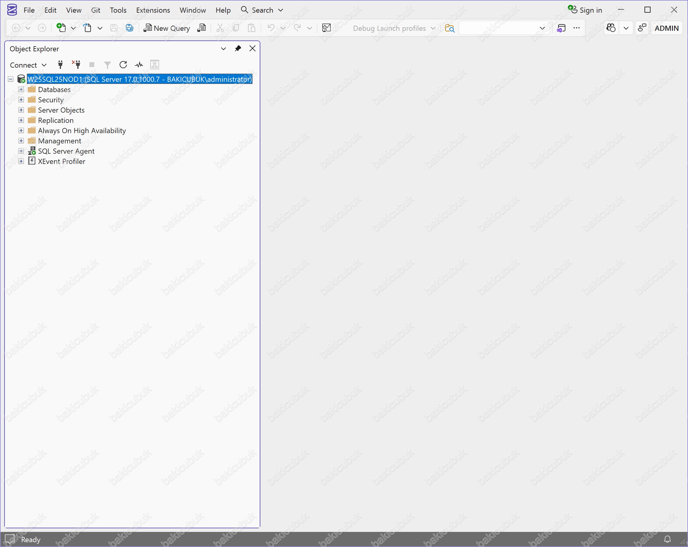 Microsoft SQL Server Management Studio (SSMS) konsolunda W25SQL25NOD1 isimli sunucumuza bağlantı sağlamış oluyoruz.