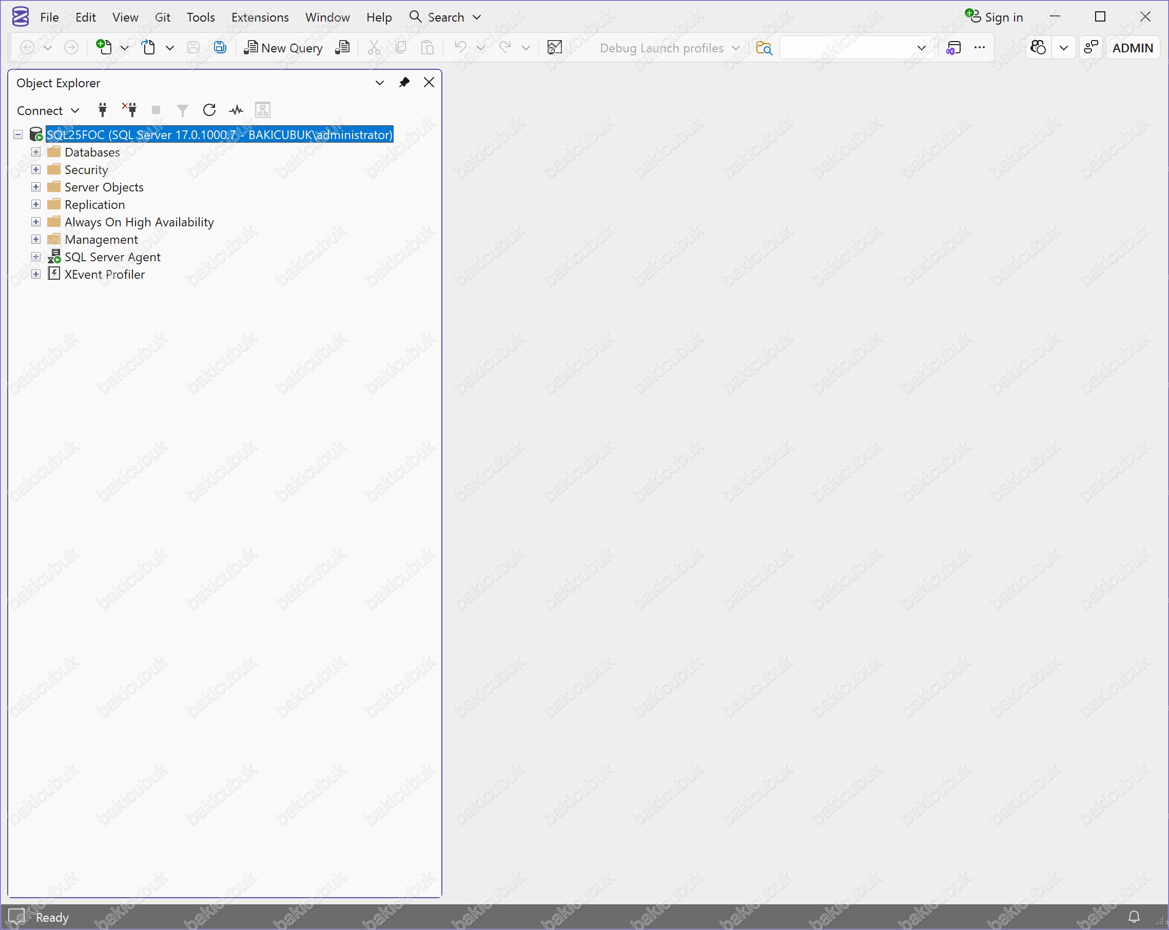 Microsoft SQL Server Management Studio (SSMS) konsolunda SQL25FOC isimli Microsoft SQL Server 2025 Failover Cluster yapısına bağlantı sağlamış oluyoruz.