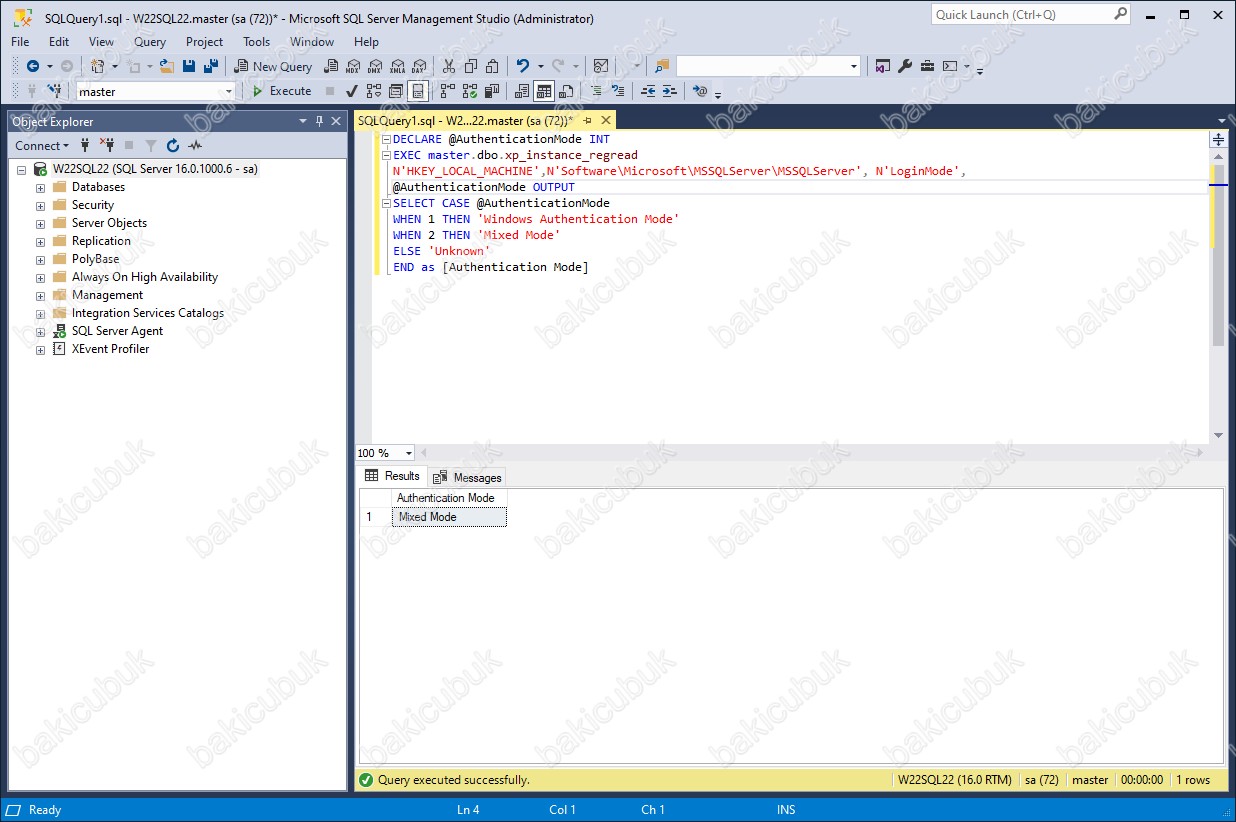 serverproperty() fonksiyona IsIntegratedSecurityOnly parametresini verererek Microsoft SQL Server’ın Server Authentication modunu öğrenebilirsiniz: