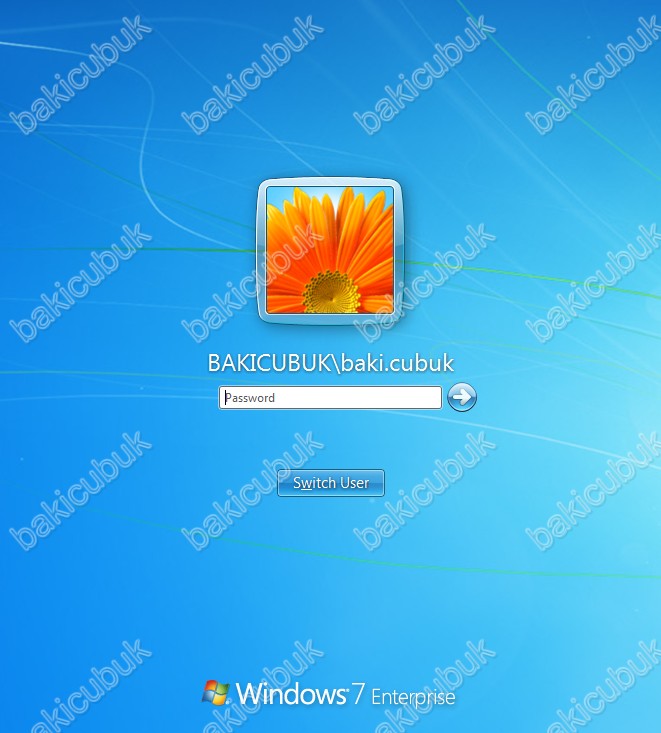 Gördüğünüz gibi makinamiz restart olduktan sonra bakicubuk\baki.cubuk ismi ile yani Domain dahil edilmiş bir şekilde açılıyor.