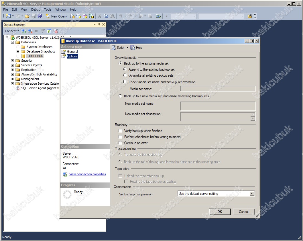Copy only Backup : Bu Backup ( Yedek ) alma işleminin Backup zincirine dahil edilip edilmeyeceği ile ilgili ayardır.