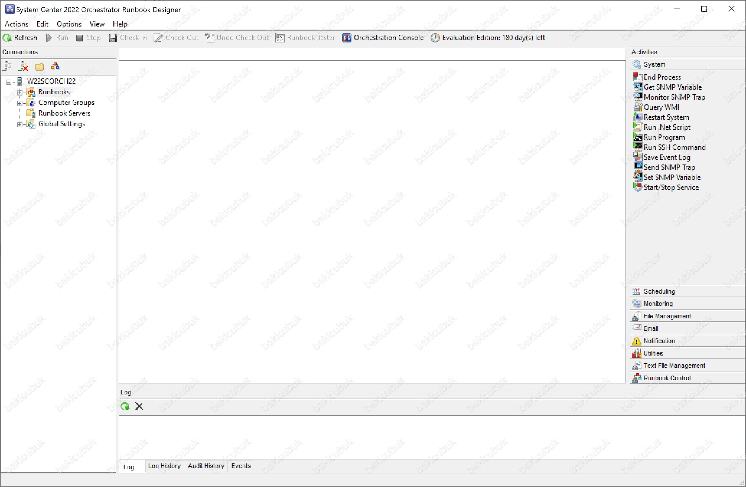 System Center Orchestrator 2022 konsolu geliyor karşımıza.