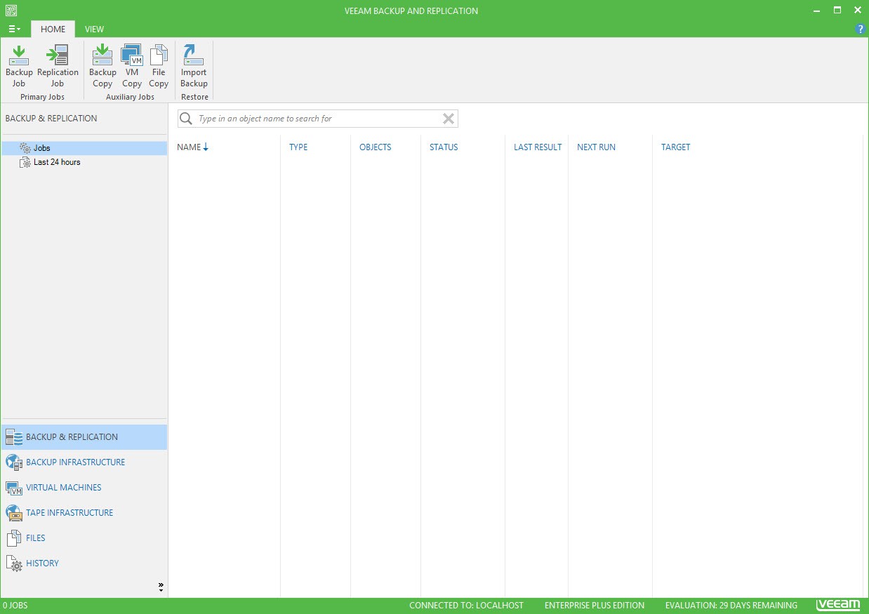 Yenilenmiş arayüzü ile Veeam Backup & Replication v9 konsolunu açıyoruz.