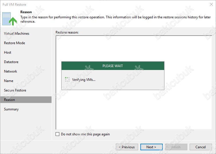 Reason ekranın da neden Restore ( Geri Yükleme ) işlemini gerçekleştirildiğiyle ilgili bilgiyi Restore reason bölümüne yazabilirsiniz. Do not show me this page again seçeneğini seçerek bir daha ki Restore ( Geri Yükleme ) işlemin de Reason ekranının gelmemesini sağlayabilirsiniz.