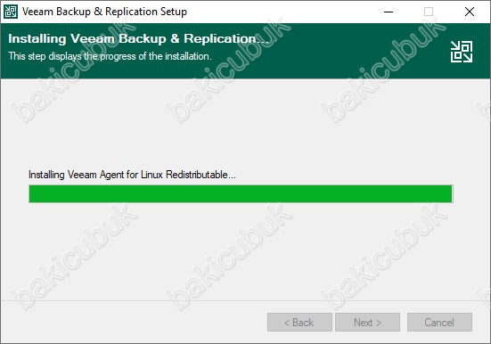 Installling Veeam Backup & Replication ekranın da Veeam Agent for Linux Redistributable kurulumunun başladığını görmekteyiz.