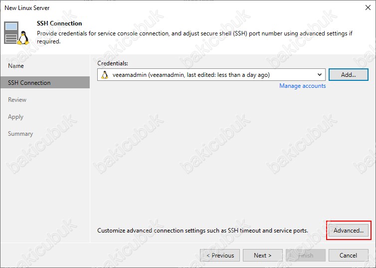 SSH Connection ekranın da Add diyerek Ubuntu Server 23.10 Ubuntu Disk Yapılandırmasında oluşturmuş olduğumuz veeamadmin kullanıcısını yapılandırmamız gerekiyor.
