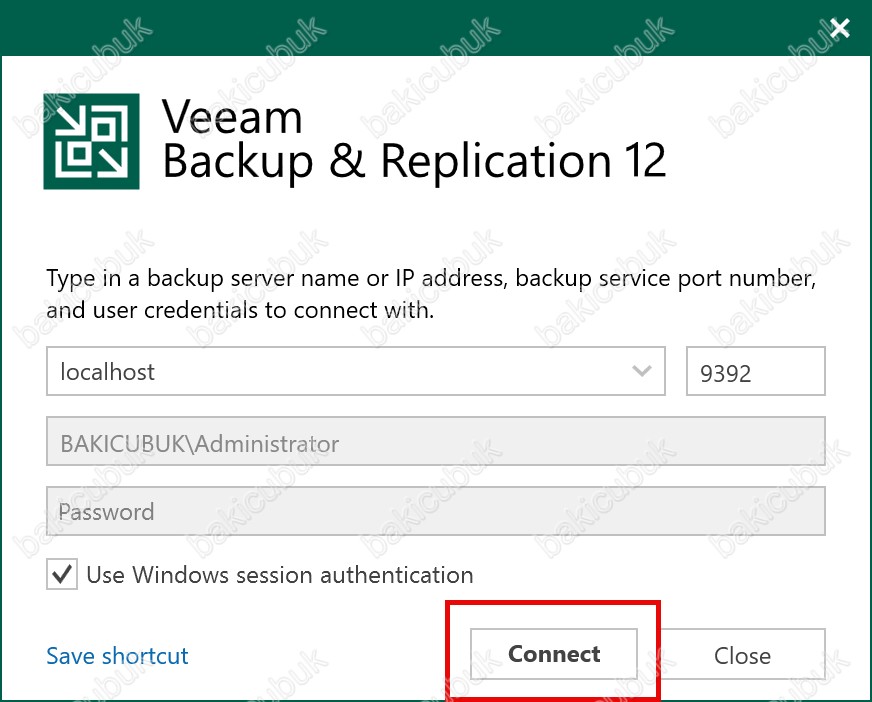 Veeam Backup & Replication 12.3 konsoluna Connect diyerek açıyoruz.