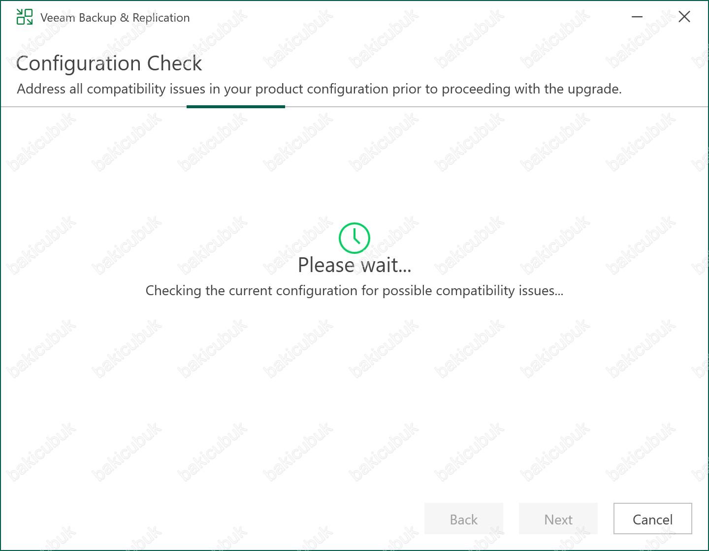 Sunucumuzu yeniden başlattıktan Veeam Backup & Replication 13.0.1.1071 yükseltme sürecini tekrar başlattıktan sonra System Configuration Check ekranını geçtikten sonra Configuration Check ekranı gelecektir karşımıza.