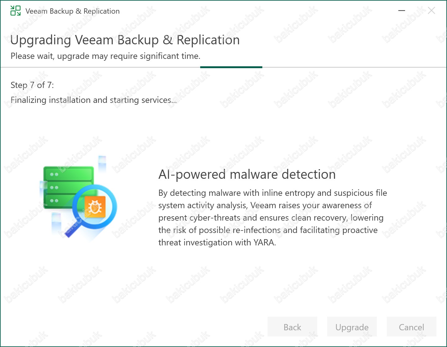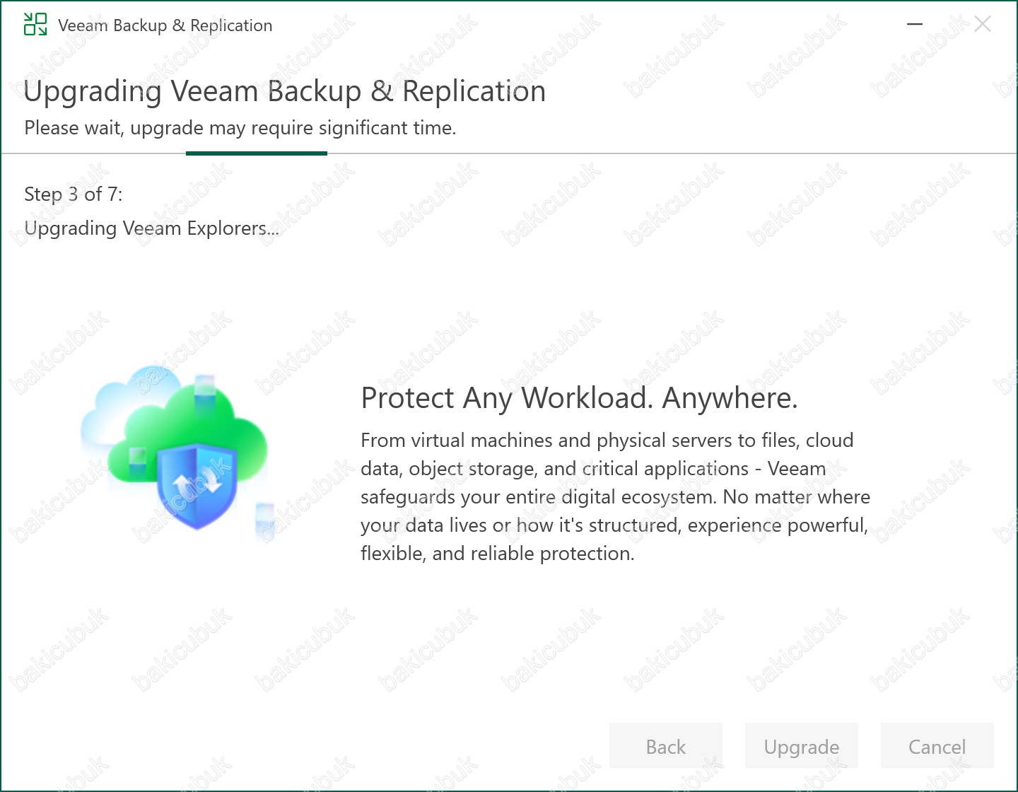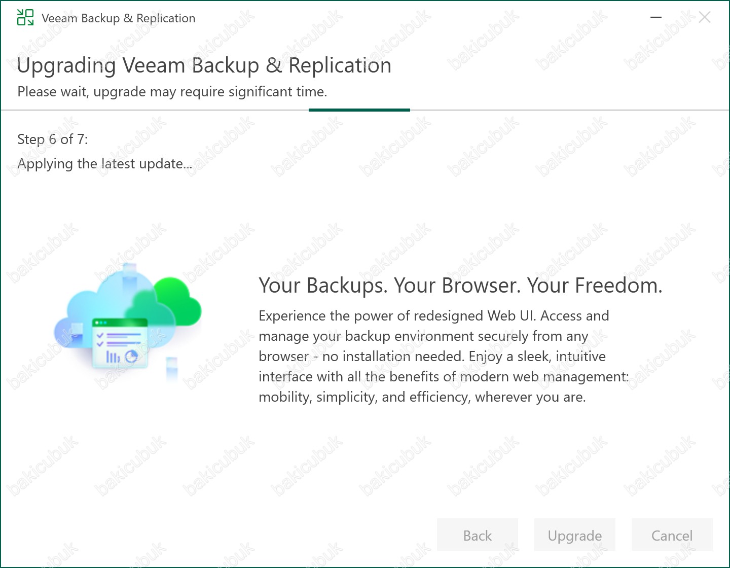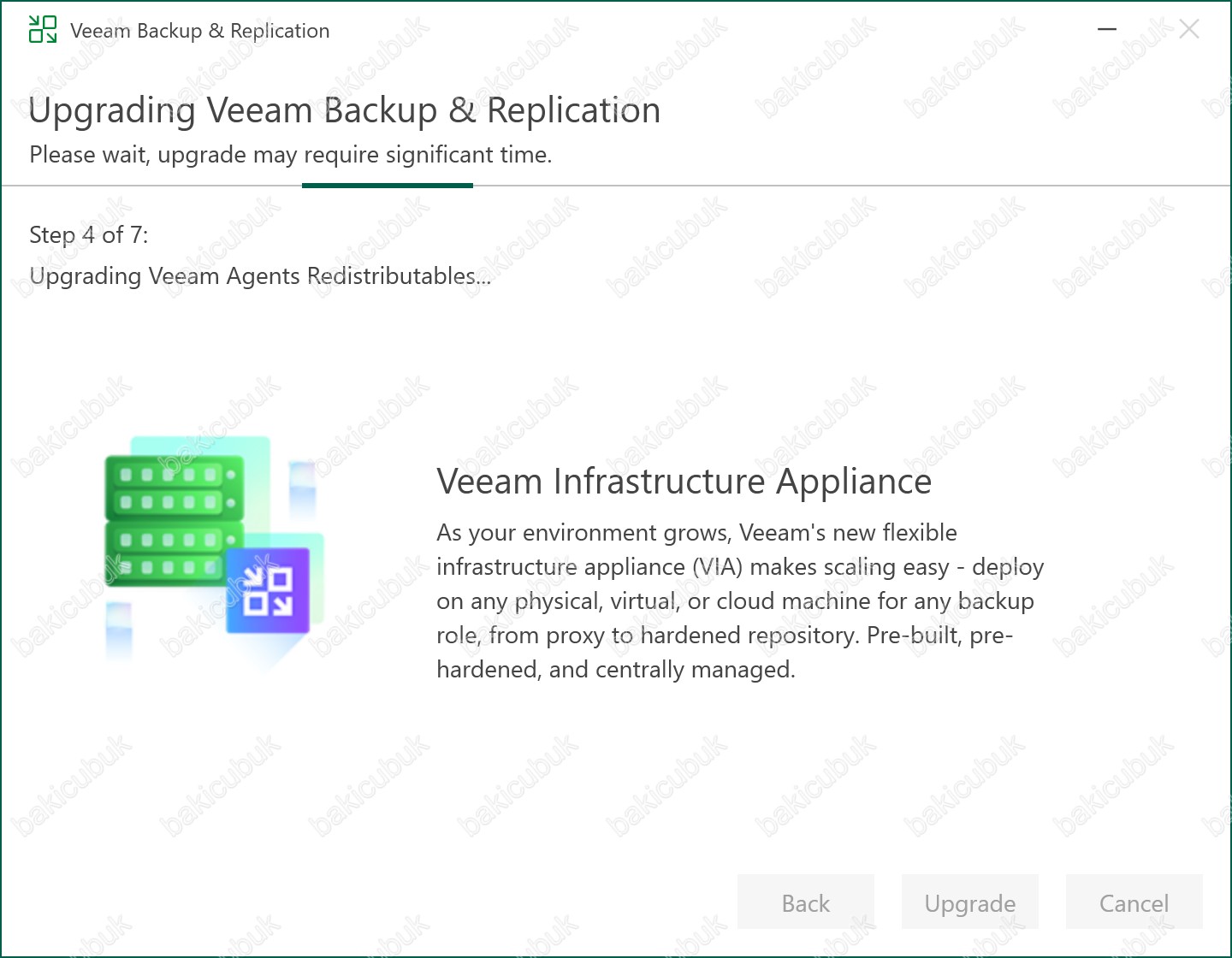 Bu işlem sırasında Backup Job’ları, Replication Job’ları ve planlanmış görevler geçici olarak durdurulur ve yükseltme tamamlandığında otomatik olarak yeniden aktif hale gelir.