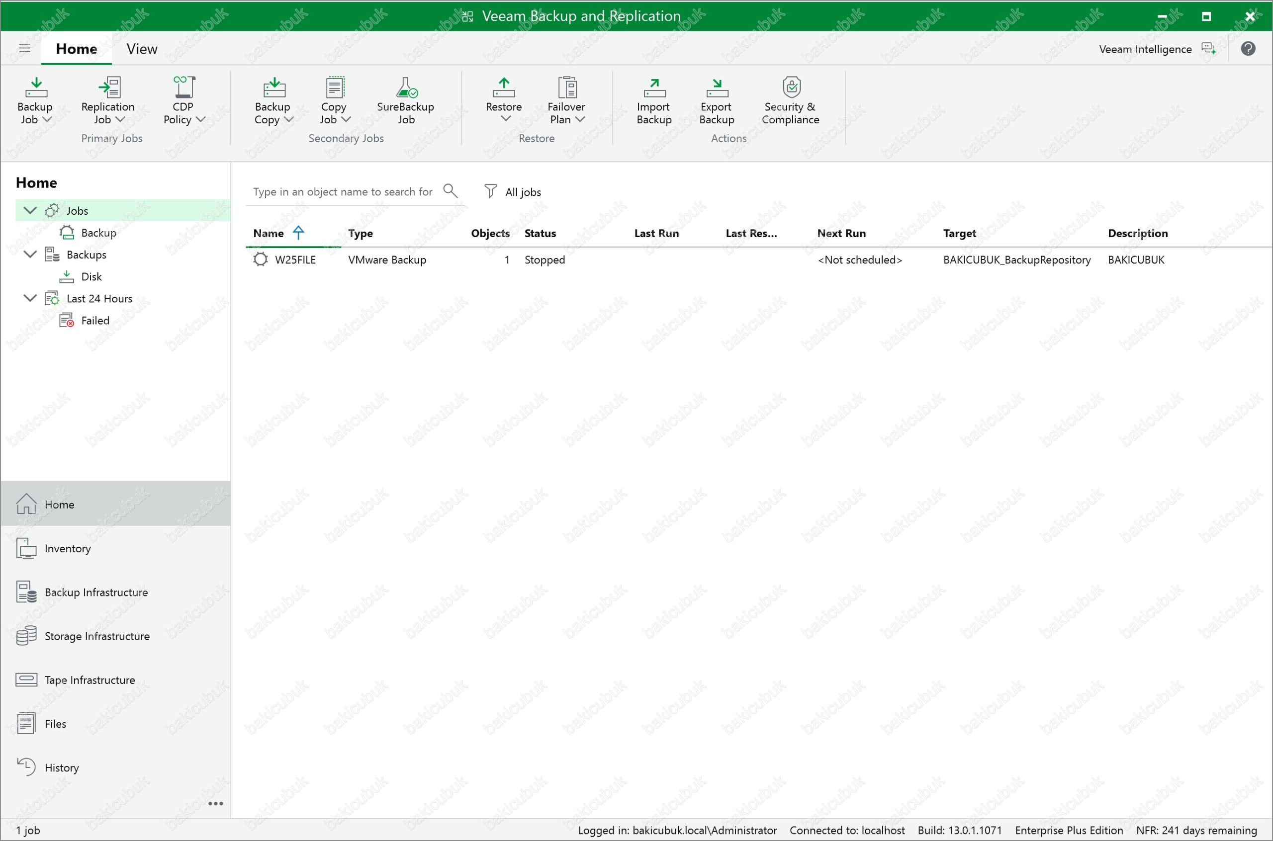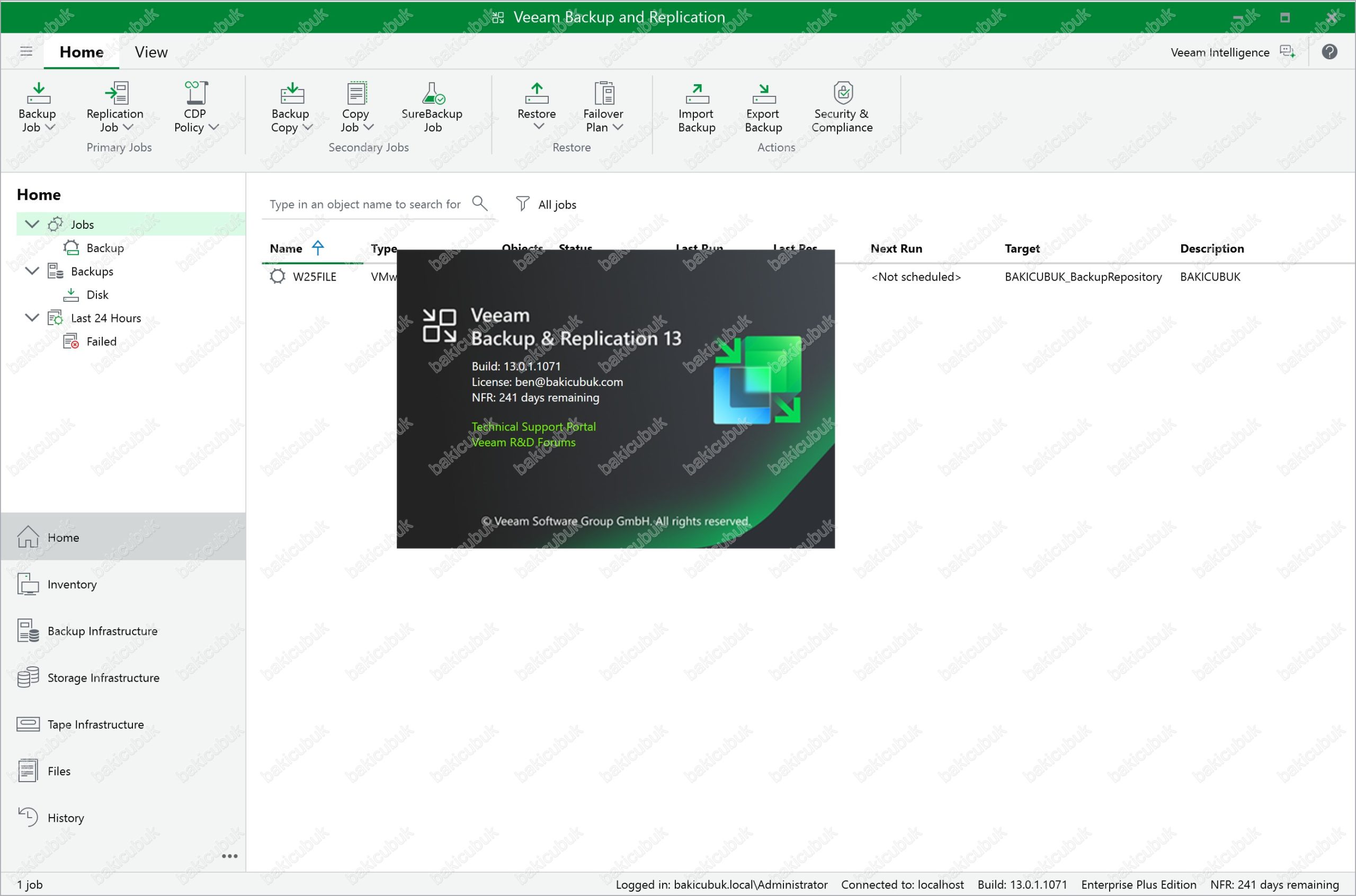 Veeam Backup & Replication versiyonunu 13.0.1.1071 olarak görüyoruz.