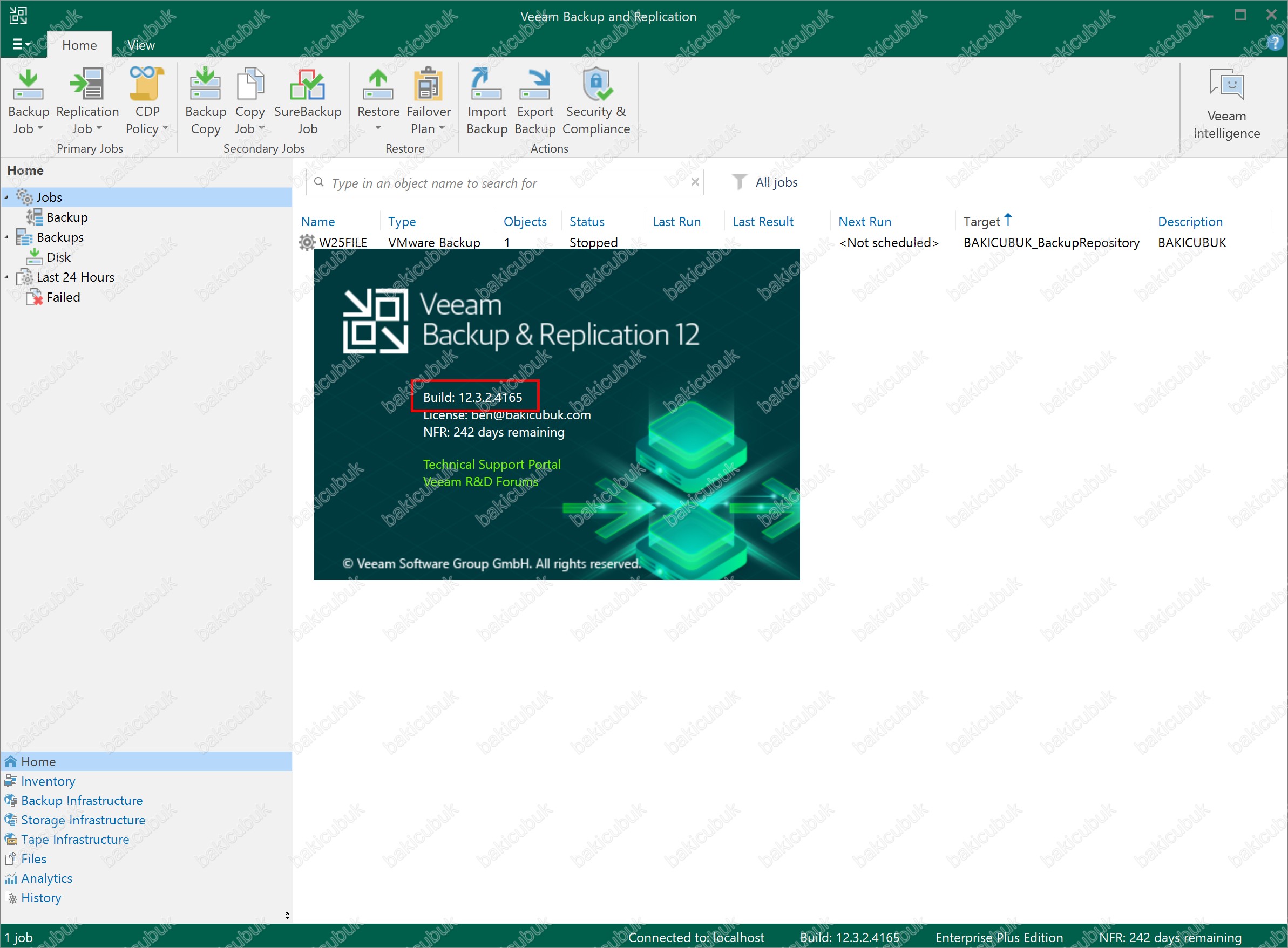Veeam Backup & Replication 12.3 versiyonunu 12.3.2.4165 olarak görüyoruz.