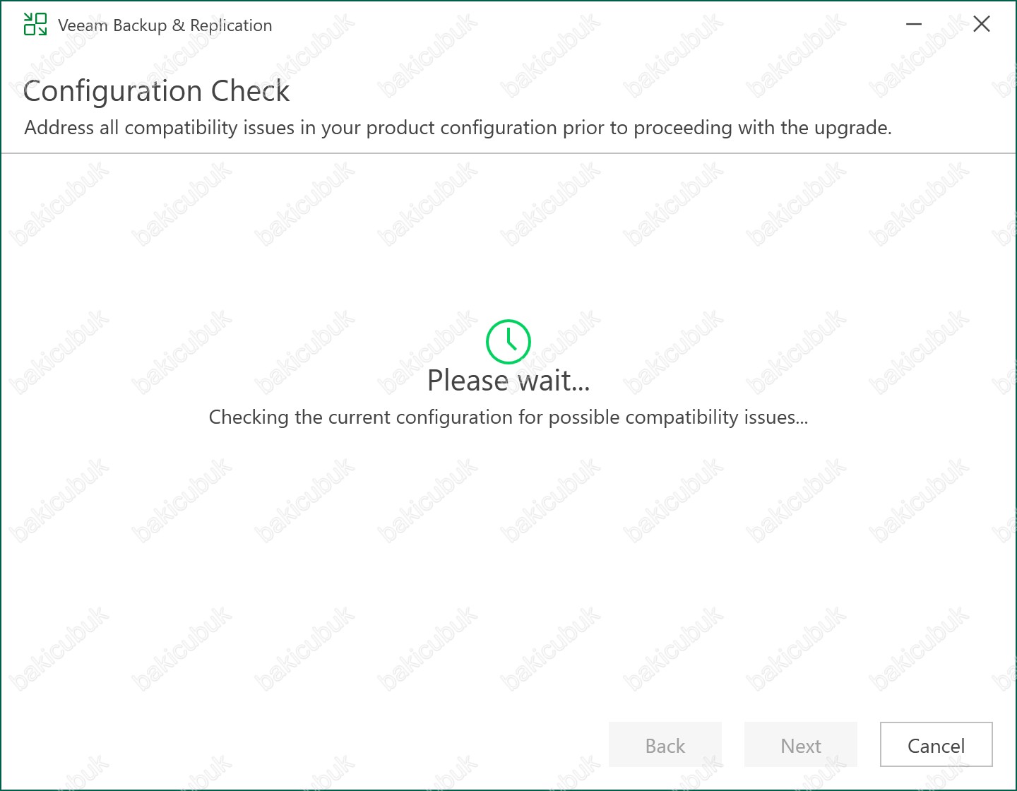 Configuration Check ekranında Veeam Backup & Replication 13.0.1.180 yükseltme süreci başlamadan önce sistemdeki tüm gereksinimleri doğrulamak için kullanılan kontrol aşamasıdır. Bu aşamada işletim sistemi uyumluluğu, gerekli Windows bileşenleri, .NET sürümleri, Veeam servis durumu, PostgreSQL bağlantısı, lisans bilgisi ve diğer kritik önkoşullar detaylı bir şekilde analiz edilir. Amaç, Veeam Backup & Replication 13.0.1.180 yükseltme işlemi sırasında hata oluşmaması için sunucunun teknik olarak tam uyumlu ve hazır olduğunu doğrulamaktır. Bu kontrolden sonra tespit edilen eksikler veya uyarılar için bilgi verir ve upgrade süreci buna göre devam edilir.