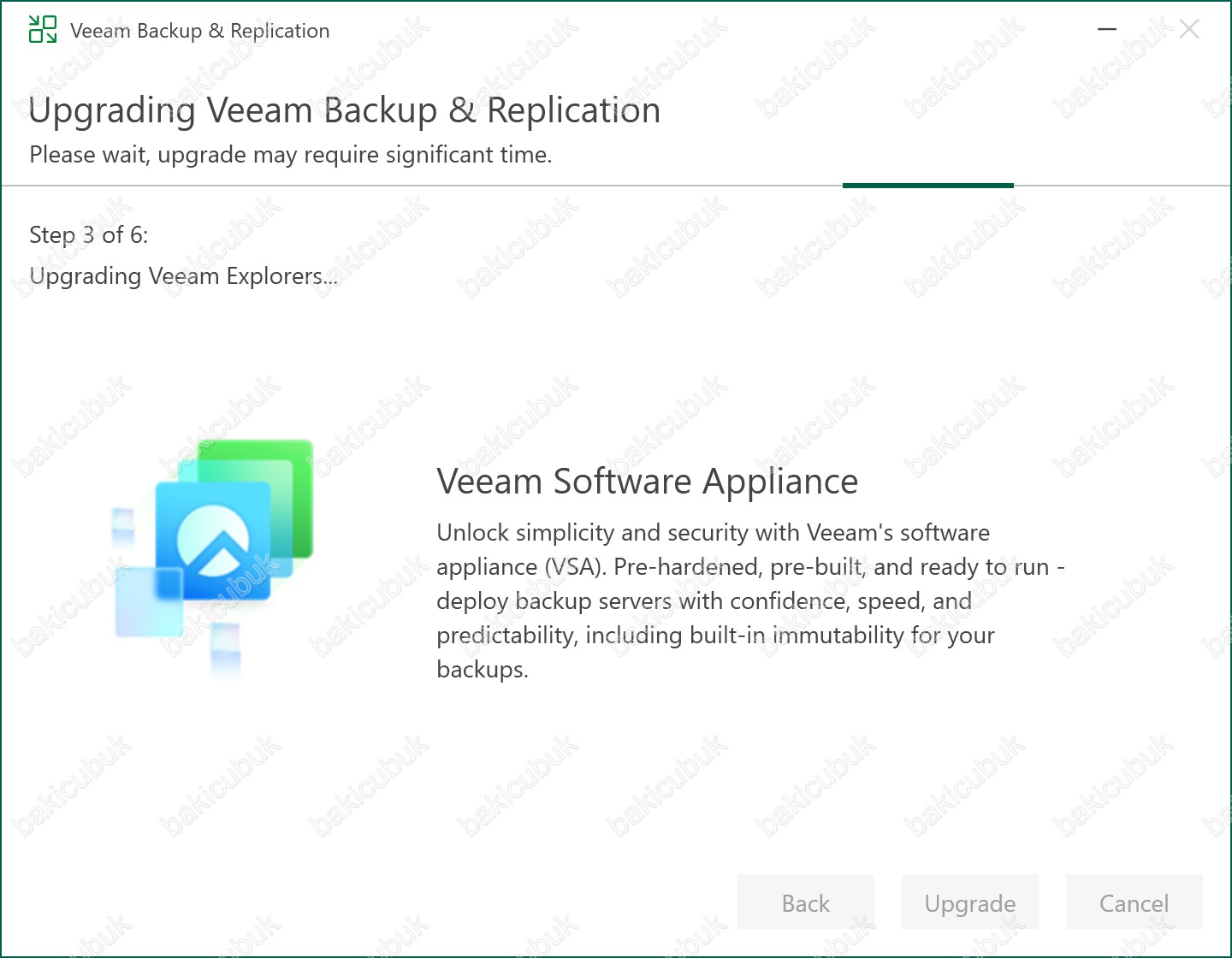Upgrading Veeam Backup & Replication ekranında Upgrading Veeam Explorers adımında Veeam Explorers yükseltme işleminin yapıldığını görüyoruz.