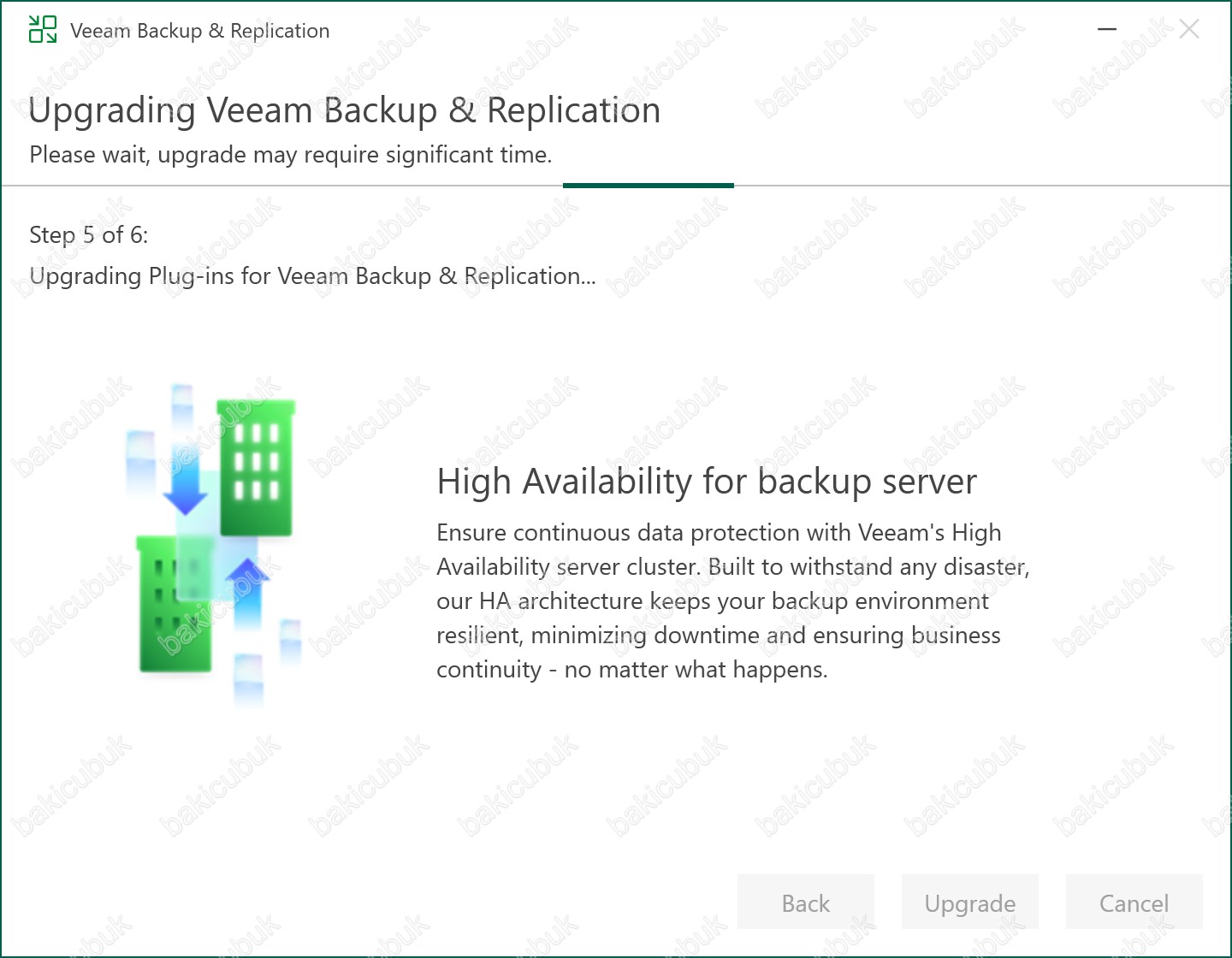 Upgrading Veeam Backup & Replication ekranında Upgrading Veeam Backup & Replication Server adımında Veeam Backup & Replication Server yükseltme işleminin yapıldığını görüyoruz.