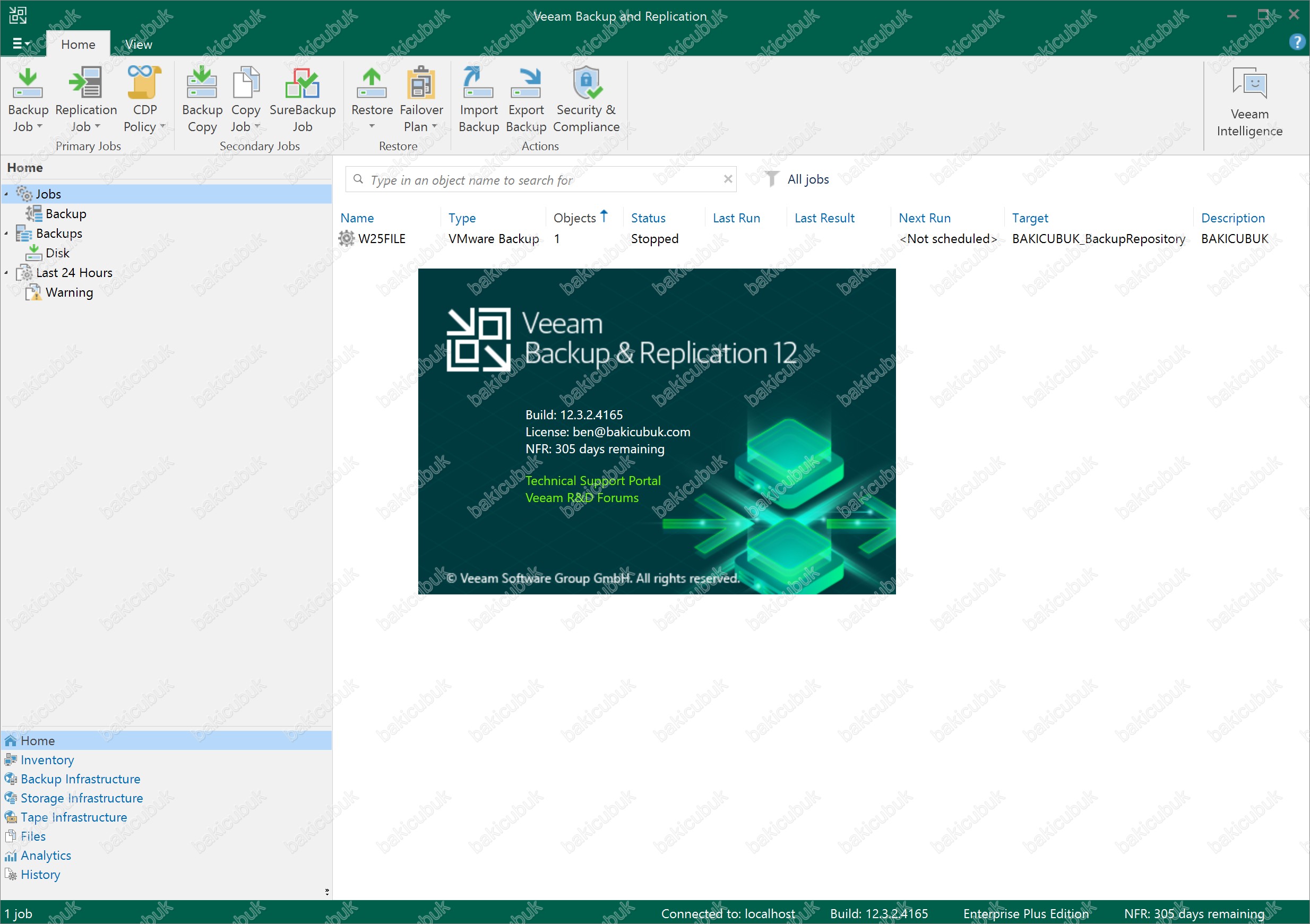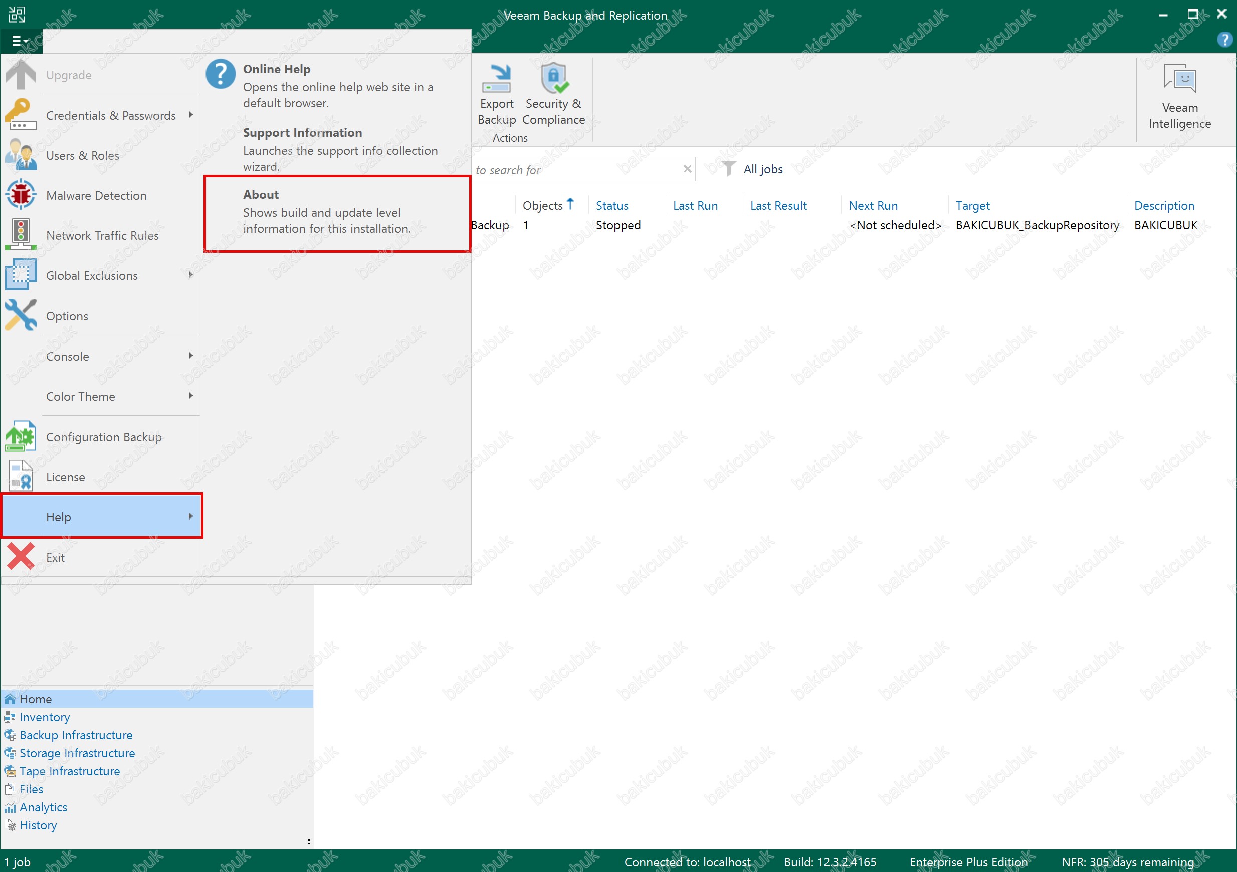 Veeam Backup & Replication 12.3 versiyonunu 12.3.2.4165 olarak görüyoruz.