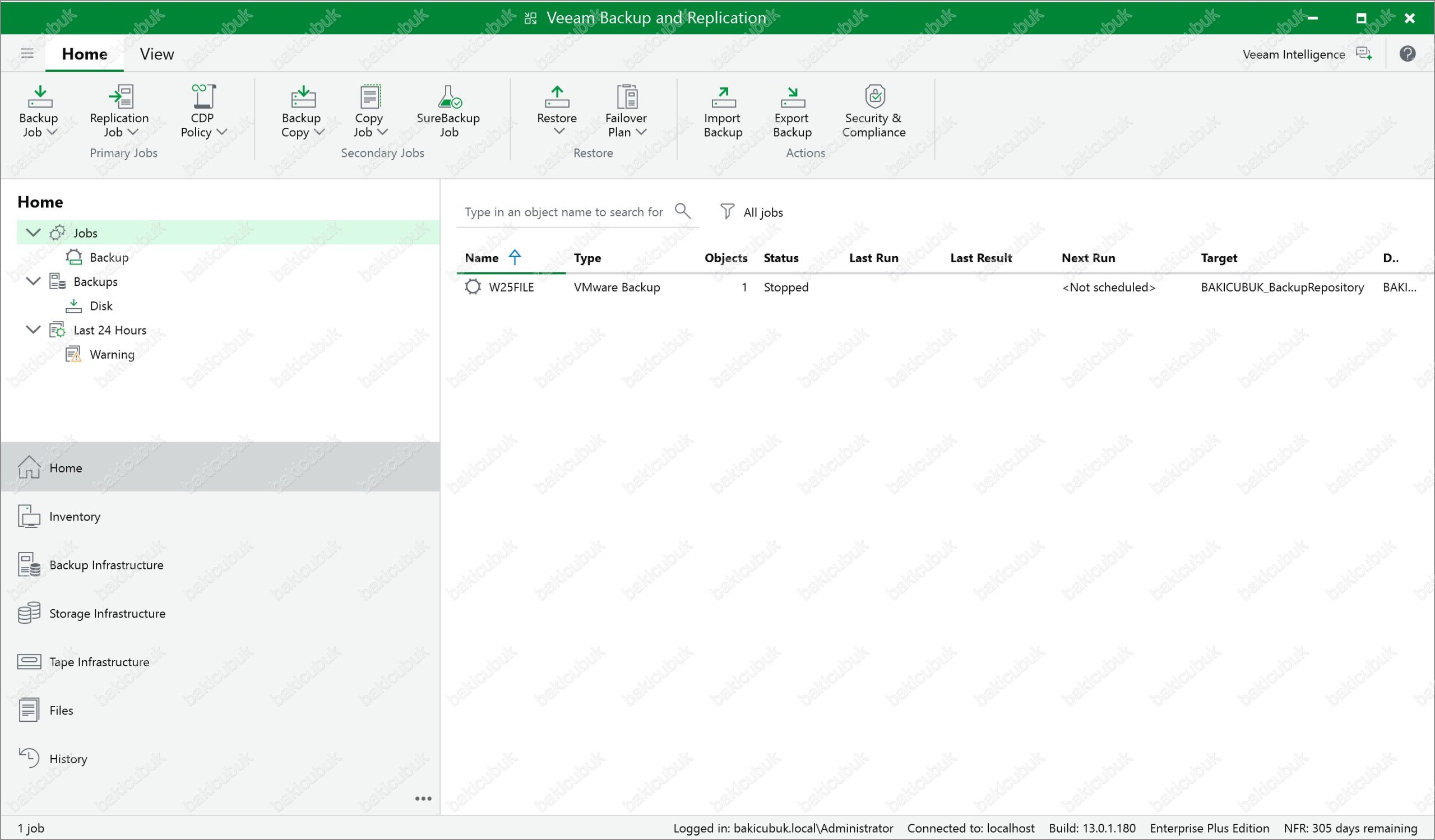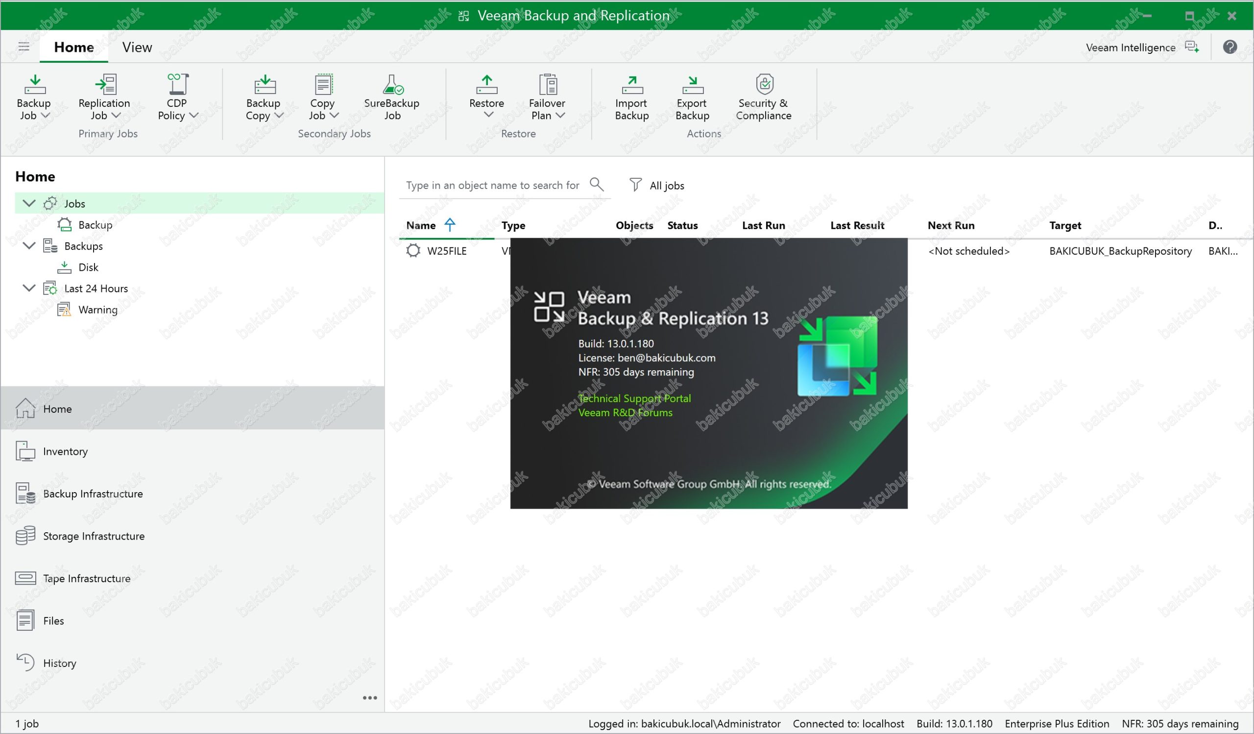 Veeam Backup & Replication versiyonunu 13.0.1.180 olarak görüyoruz.
