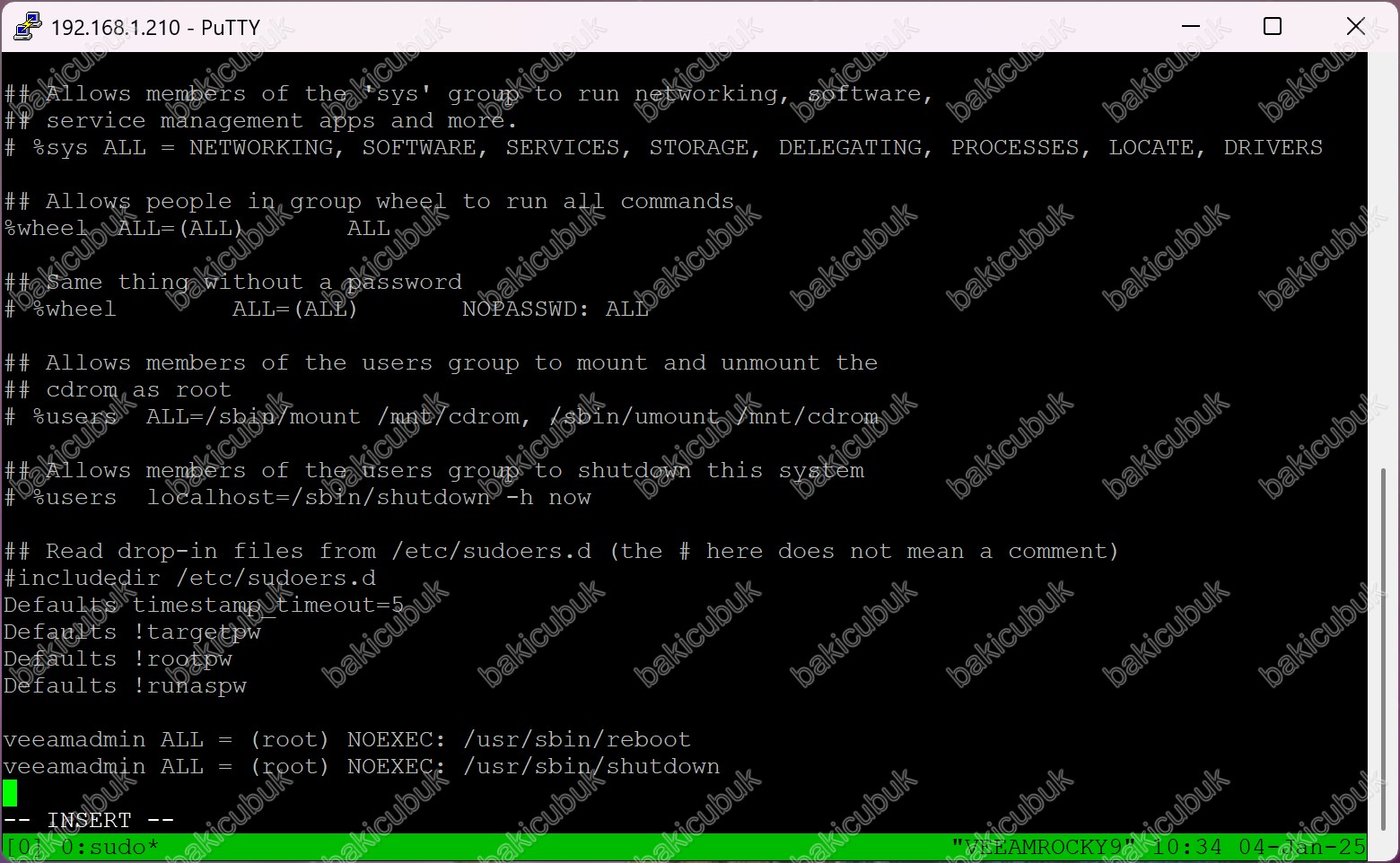 veeamadmin kullanıcımıza Rocky Linux 9.5 sunucumuz üzerinde Reboot ( Yeniden Başlatma ) ve Shutdown ( Kapatma ) işlemleri için yetki vereceğiz.