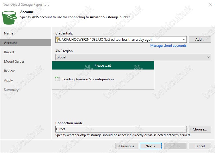 - Direct seçeneği ile Amazon Cloud Storage alanına doğrudan erişebilmesini yapılandırabilirsiniz.