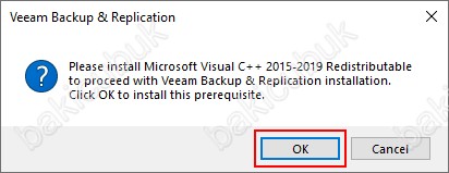 Veeam Backup & Replication 12 Beta kurulumu işleminden önce sunucumuz üzerinde Microsoft Visual C++ 2015-2019 Redistributable yazılımının kurulması için OK diyoruz.