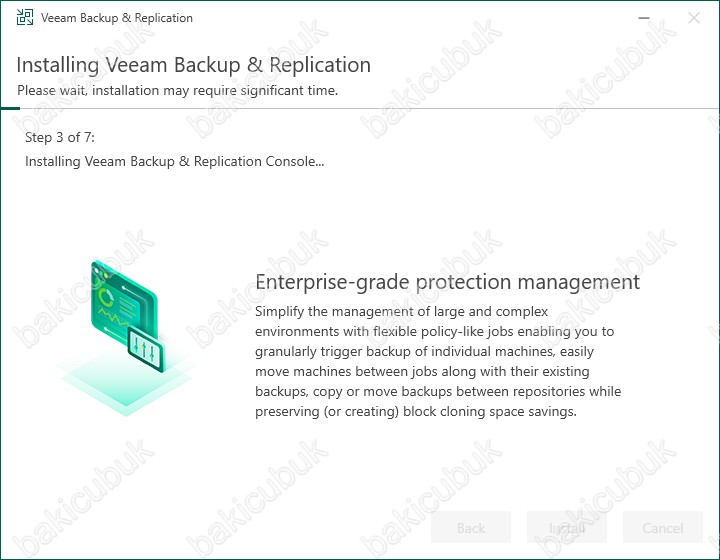Installing Veeam Backup & Replication ekranın da Veeam Backup & Replication Server kurulumunun başladığını görüyoruz.