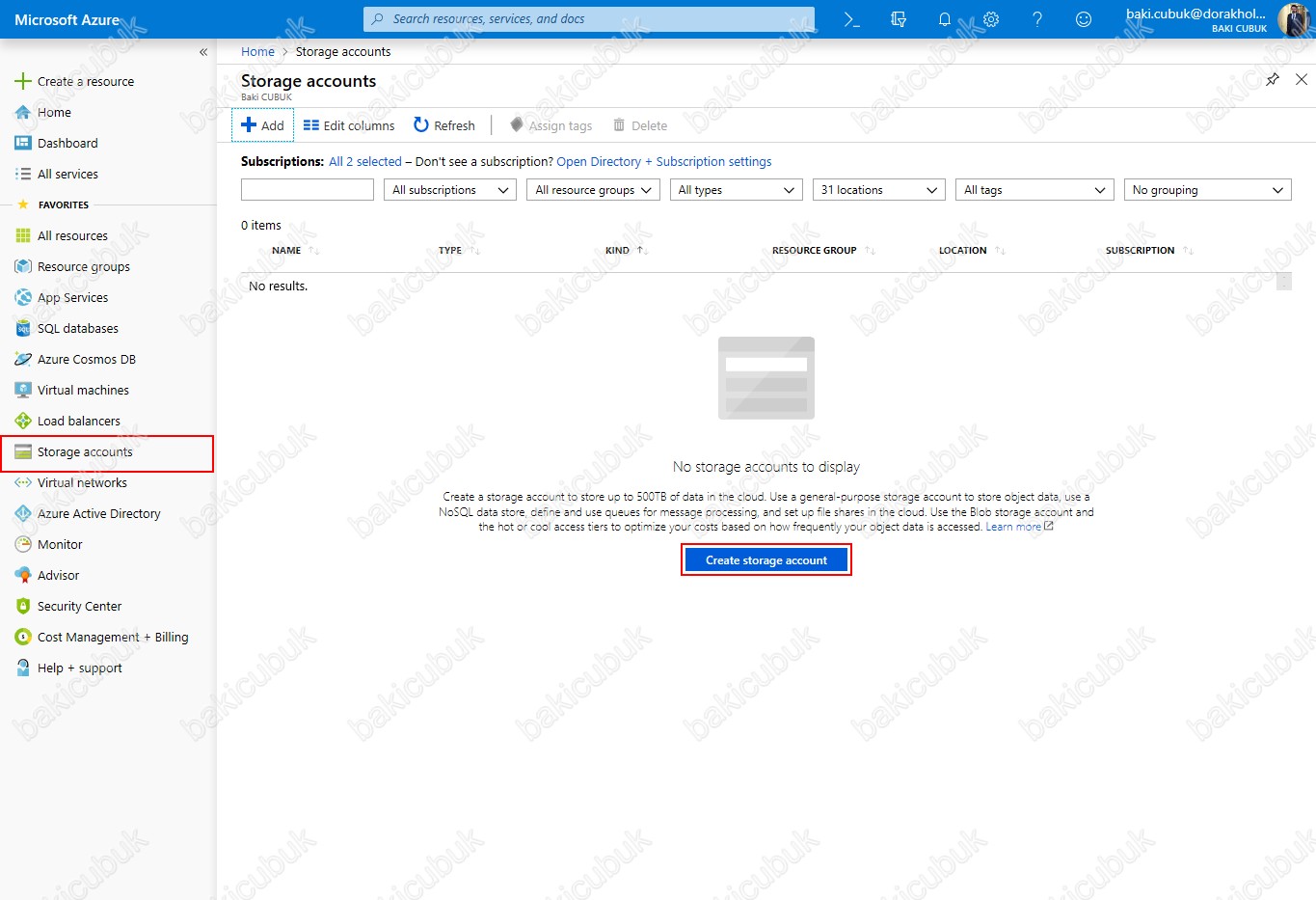 Microsoft Azure Portal’a hesabımıza Login oluyoruz ve Storage Account kısmında Create storage account diyerek Storage Account yapılandırmasına başlıyoruz.