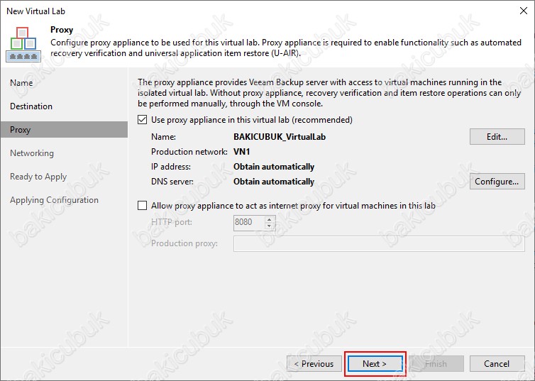 Proxy ekranın da Allow proxy appliance to act as internet proxy for virtual machines in this lab seçeneği ile ortamınızdaki internet çıkışı için bir Proxy Server yapılandırması varsa gerekli yapılandırmayı yapabilirsiniz.