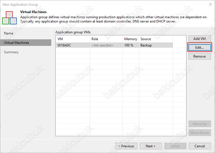 Veeam Backup & Replication v9.5 üzerinde SureBackup özelliğini yapılandırmak için sonraki yapılandırma Application Group yapılandırmasıdır. Application Group yapılandırması Virtual Lab içeresinde Virtual Machine ( Sanal Makine ) sunucuları bir araya getireceğimiz bölümdür.