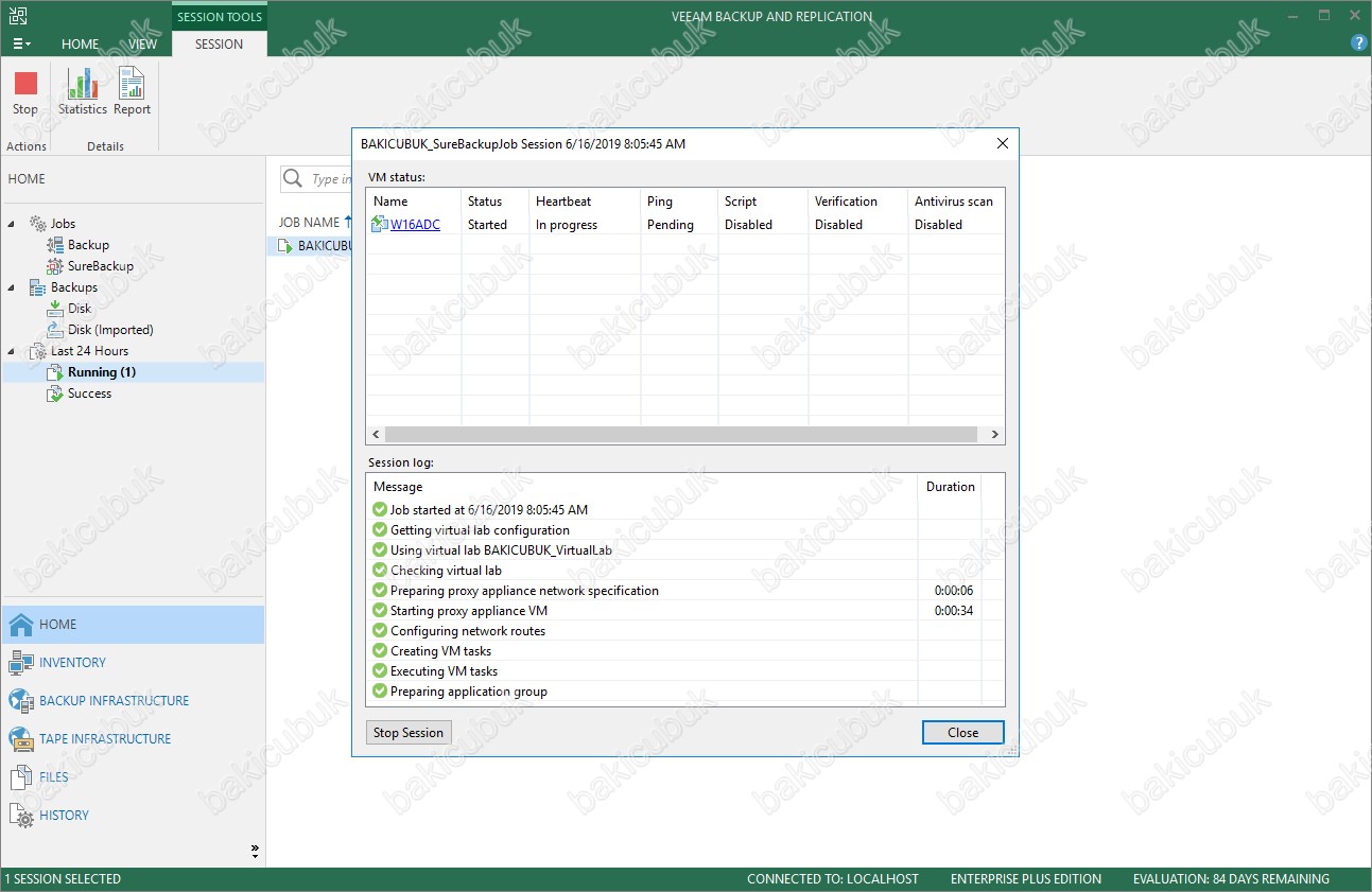 BAKICUBUK_SureBackupJob Session ekranın da ypılandırmasının çalışmaya başladığını görüyoruz.