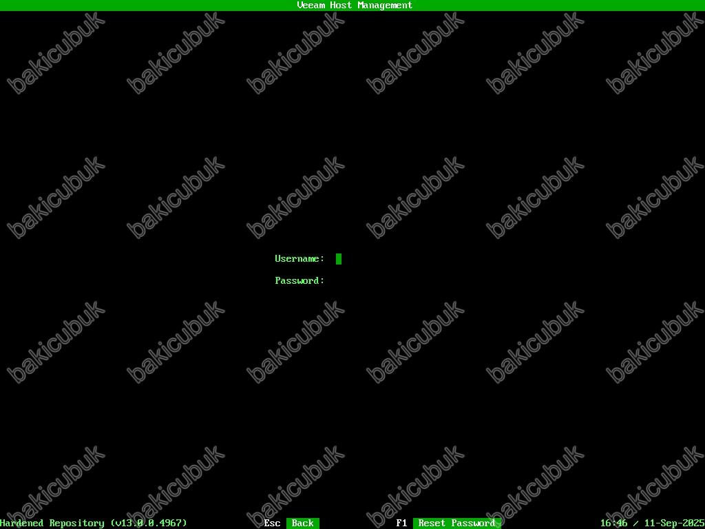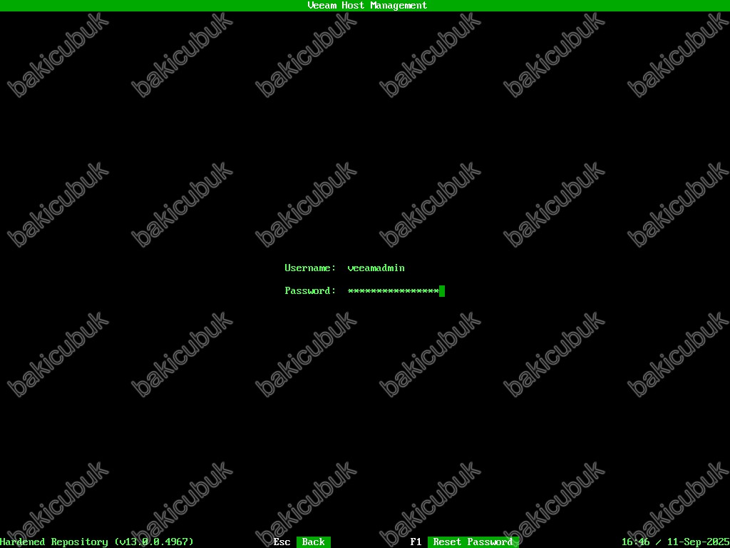Veeam Host Management ekranında Enter tuşuna basıyoruz ve Login ekranını açıyoruz.