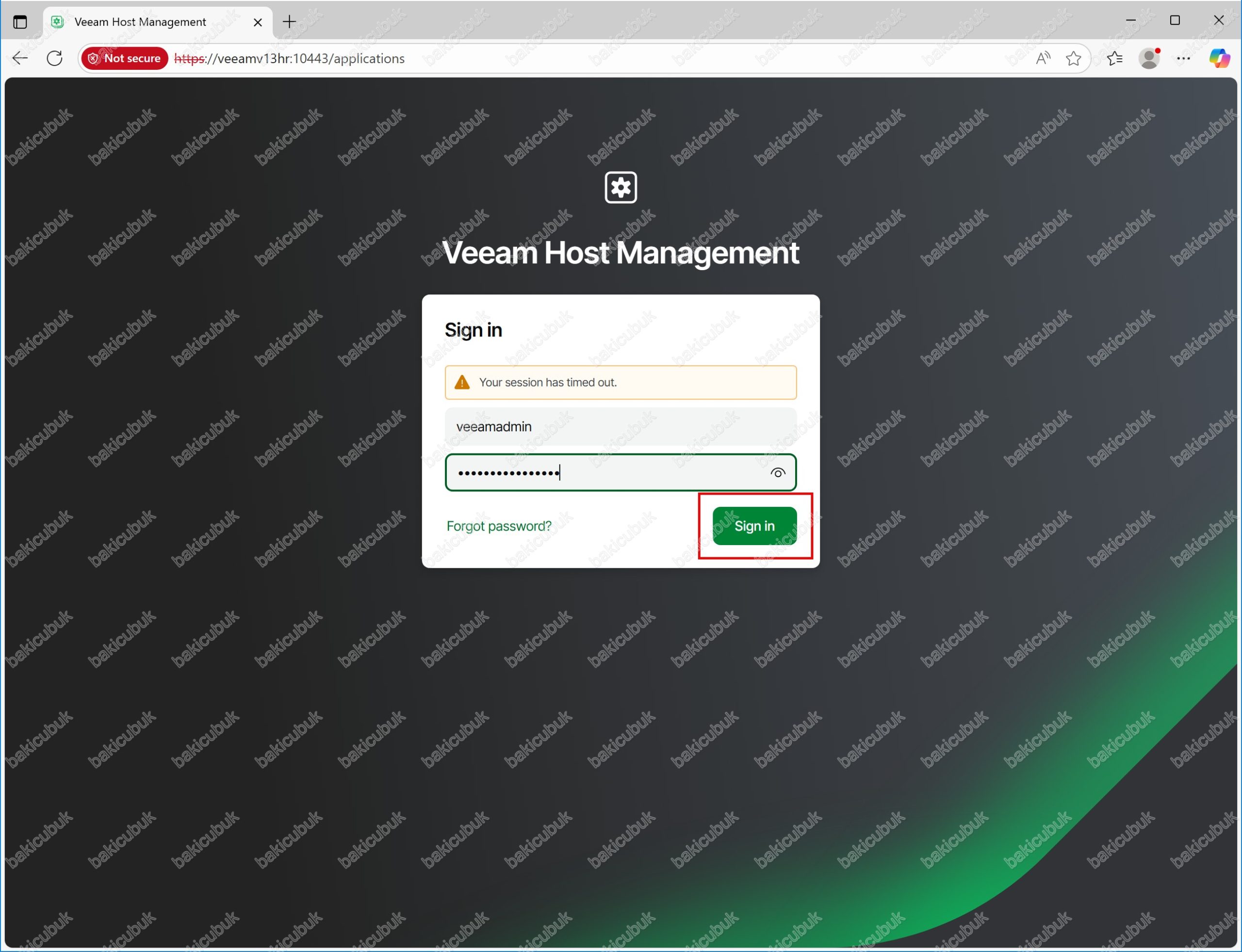Veeam JEOS 13.0.0.4967 Hardened Repository sunucumuz üzerinde öncelikli olarak Veeam Host Management Web UI yönetim konsoluna erişimini kontrol ediyoruz.