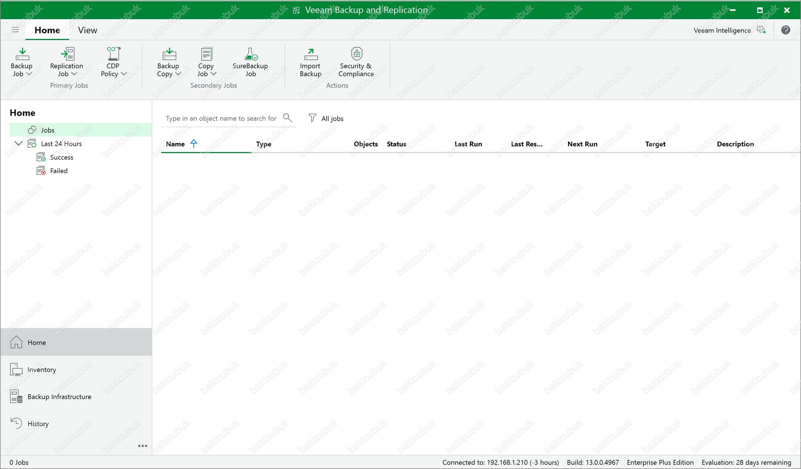 Veeam Backup & Replication 13.0.0.4967 Console ile Veeam Software Appliance 13.0.0.4967 sunucumuza bağlantı sağlamış olduk.