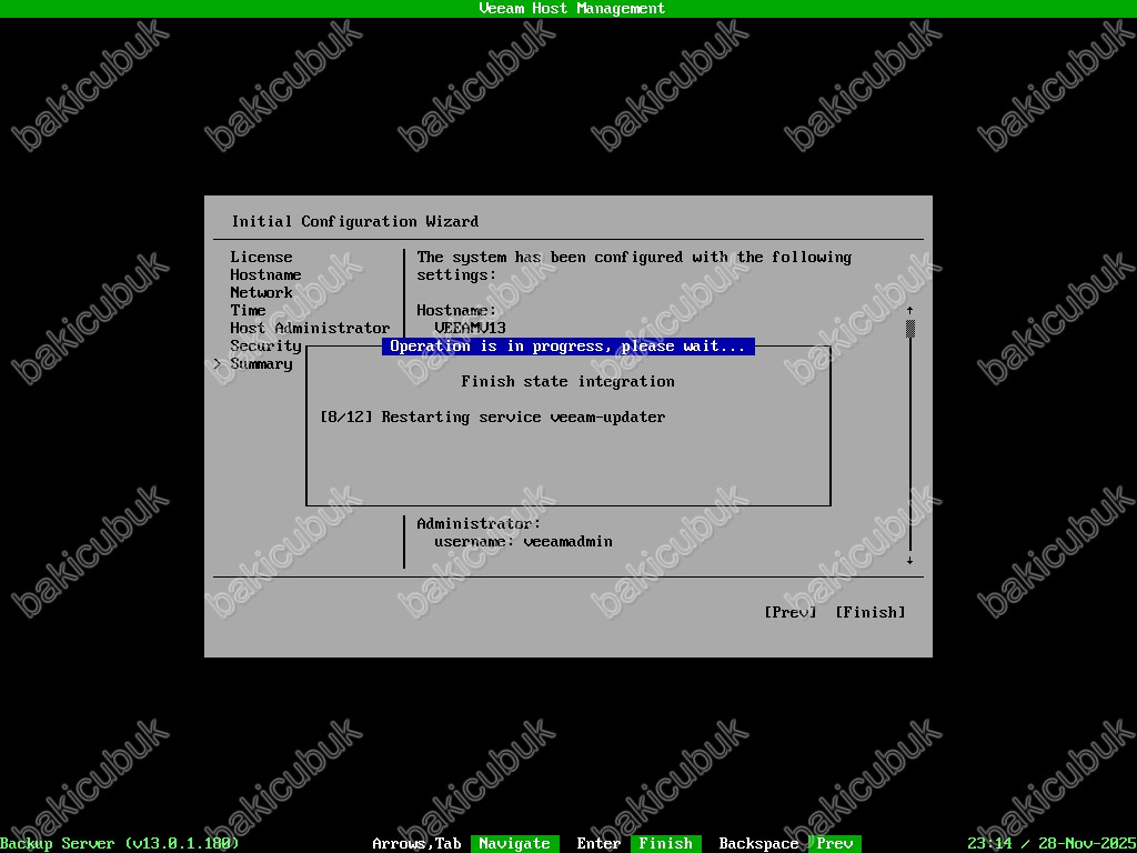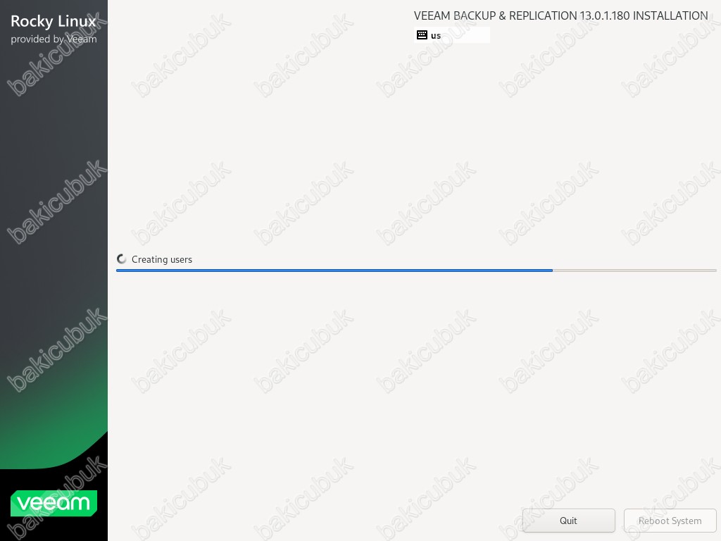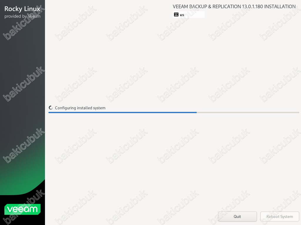 Bu ekran görünmeye başladığında Veeam Software Appliance 13.0.1.180 için gerekli tüm kurulum işlemleri sorunsuz bir şekilde başlatılmış demektir.