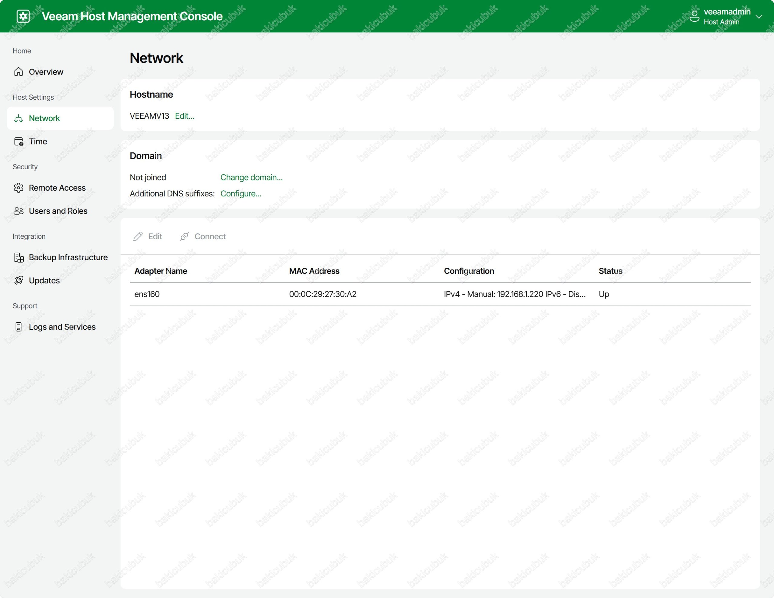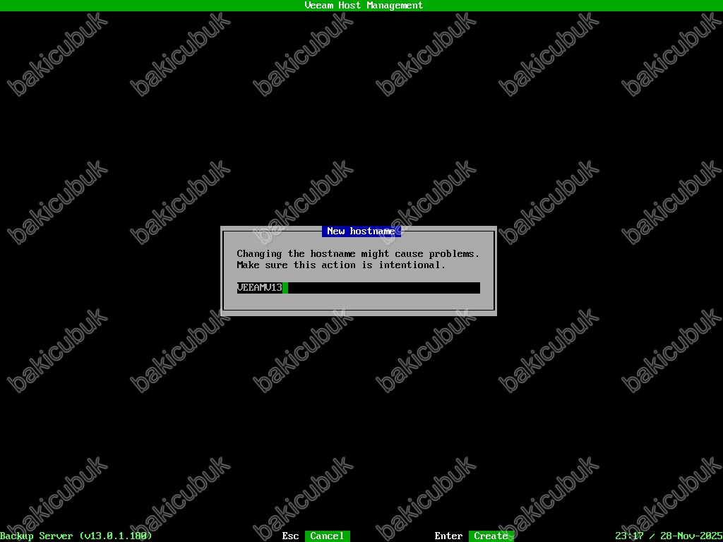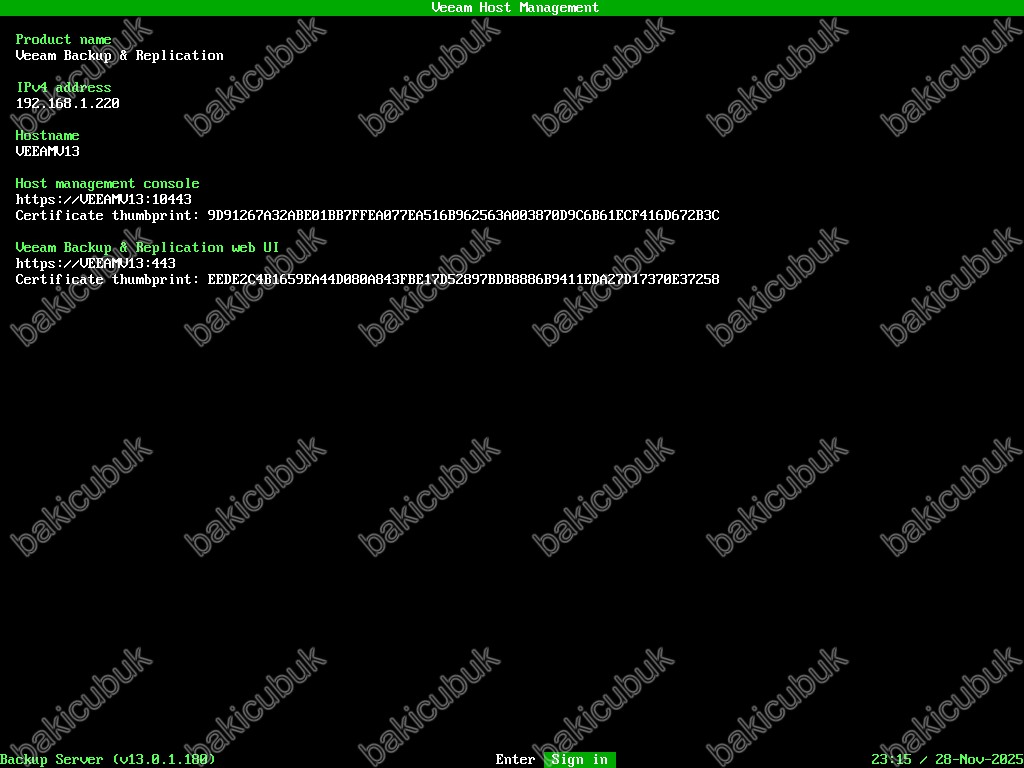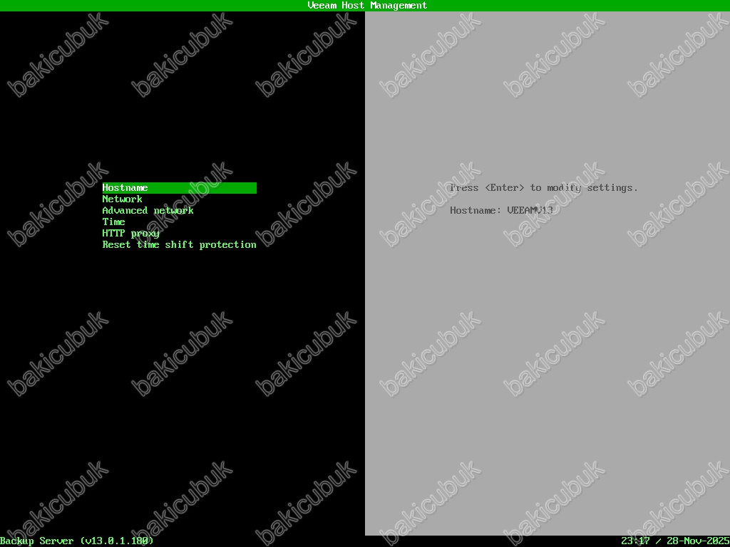 - Host Name: Veeam Software Appliance 13.0.1.180 için yapılandırmış olduğumuz sunucu adını görüyoruz.
