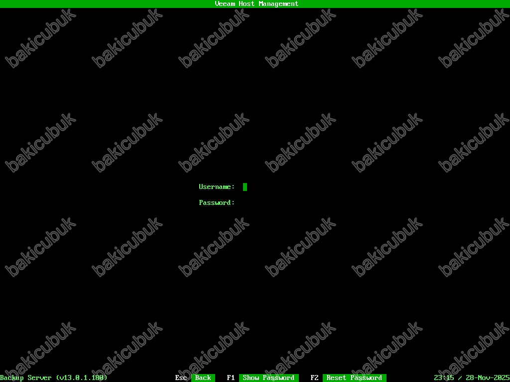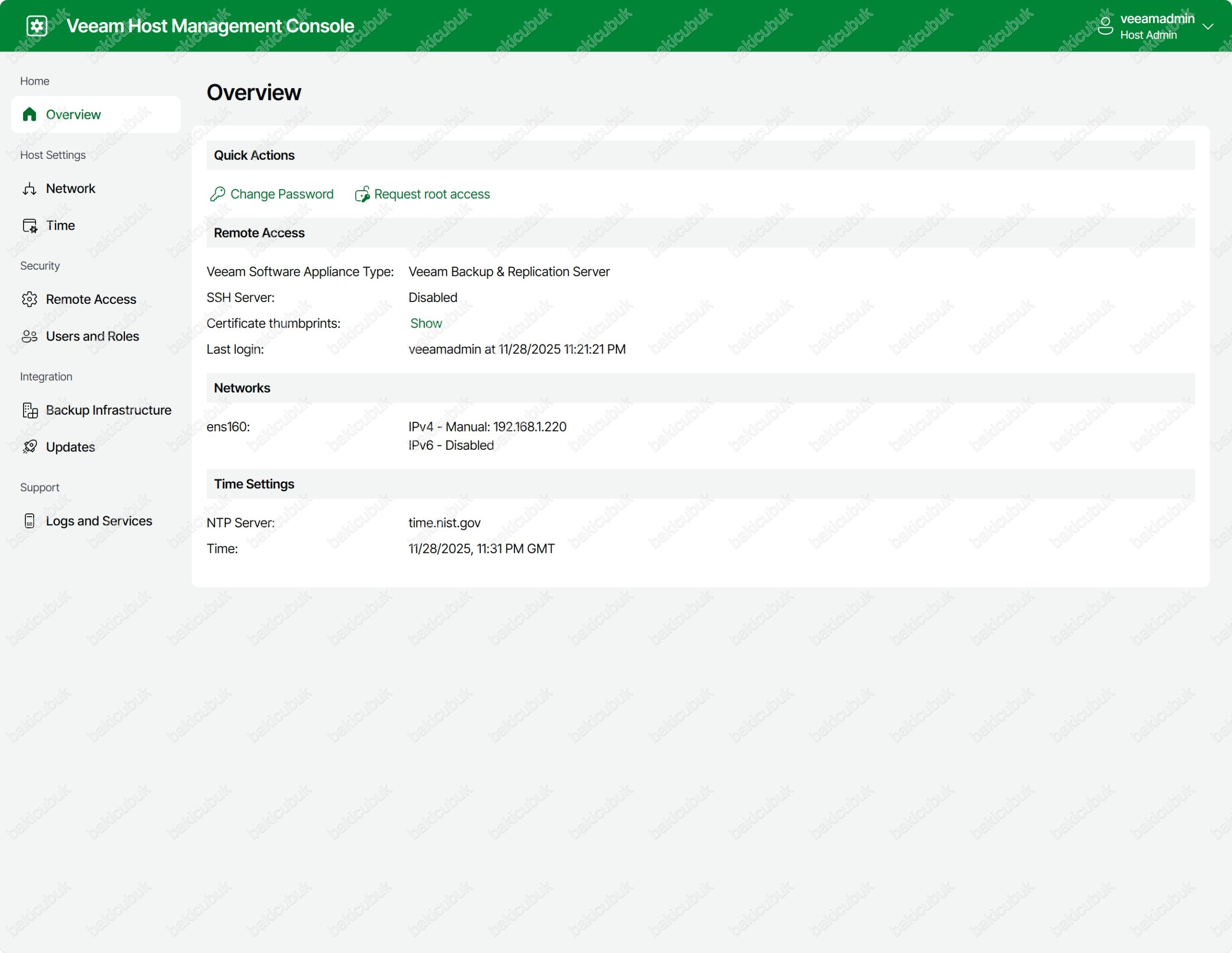 Veeam Software Appliance 13.0.1.180 kurulumununda sonra direkt olarak Veeam Host Management ekranı geliyor karşımıza.