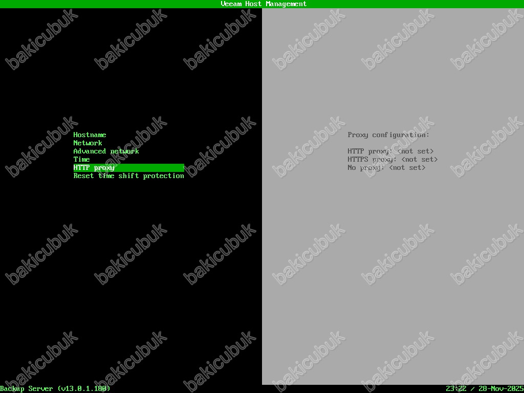 - Time: Veeam Software Appliance 13.0.1.180 sunucunuz üzerinde zaman için gerekli yapılandırmaları değiştirebilirsiniz.