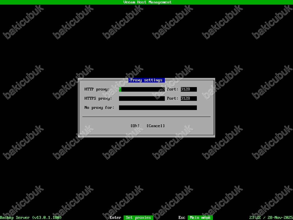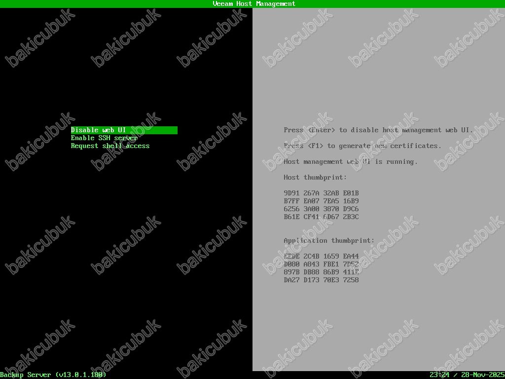 - Disable web UI: Veeam Host Management Web UI yönetim konsolunu Disable (Devre Dışı) ya da Enable (Etkinleştir) durumunu yapılandırabilirsiniz. Veeam Host Management Web UI yönetim konsolunu Disable (Devre Dışı) duruma getirirseniz burası Enable web UI olarak görünecektir.