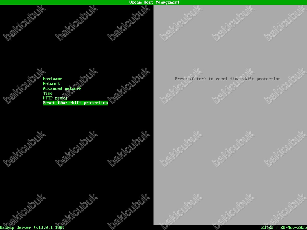 Veeam Host Management ekranında Reset time shift protection seçeneğinde Info ekranı geliyor karşımıza.