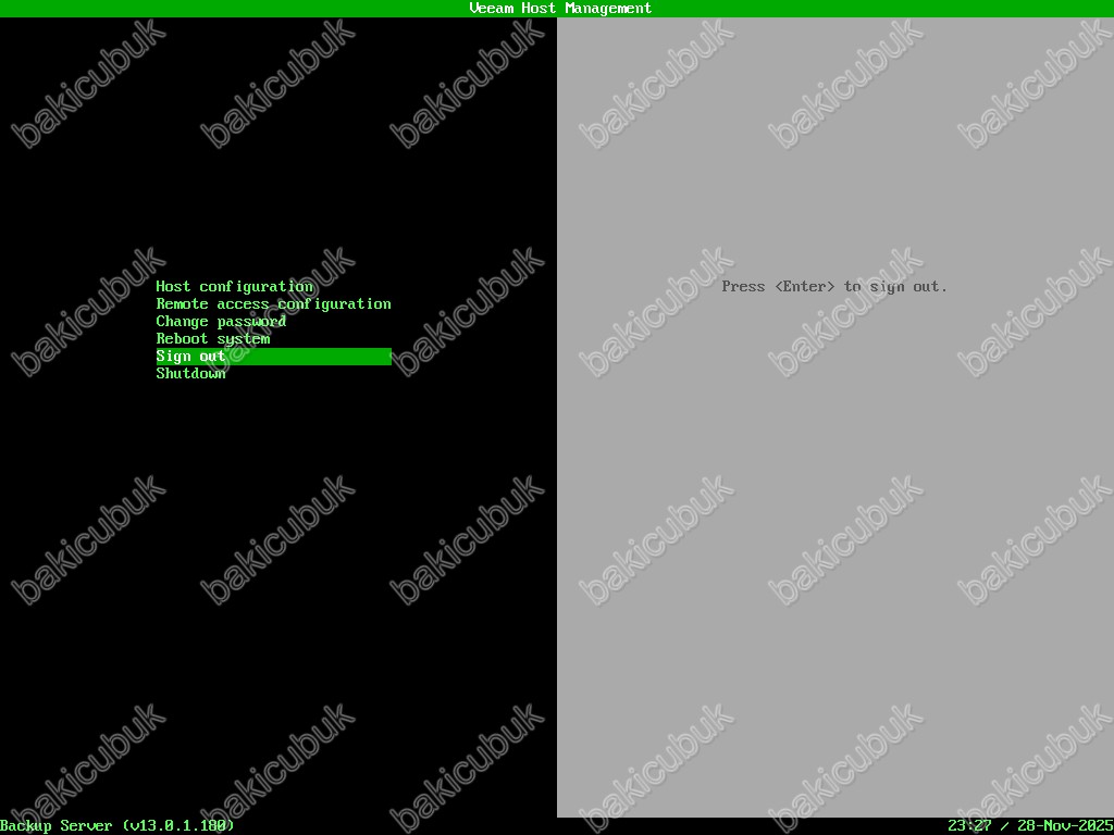 Veeam Host Management ekranında Sign out seçeneği ile Veeam Host Management oturumundan çıkış yapabilirsiniz.