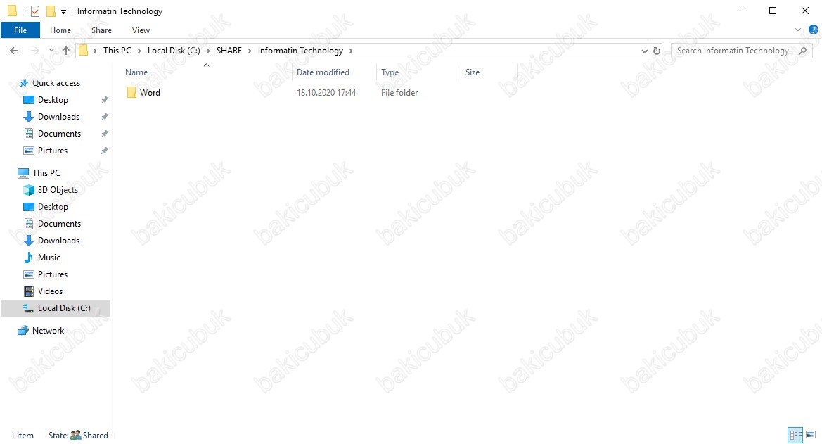 W16FILE isimli paylaşım klasörleri üzerinde bulunan sunumuz üzerinde bütün paylaşılan klasörler C dizini altında SHARE isimli bir klasör içinde bulunmaktaydı. W19FILE isimli paylaşım klasörlerini taşıyacağımız sunucumuzun C dizini altında SHARE isminde bir klasör oluşturuyoruz. Paylaşılan klasörlerin yine aynı dizin altına taşınması için. Bu klasörü paylaşıma açmanıza gerek yoktur.